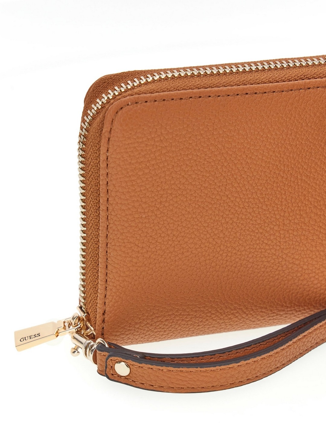Guess Cognac Solid Laurel Large Zip Around Wallet