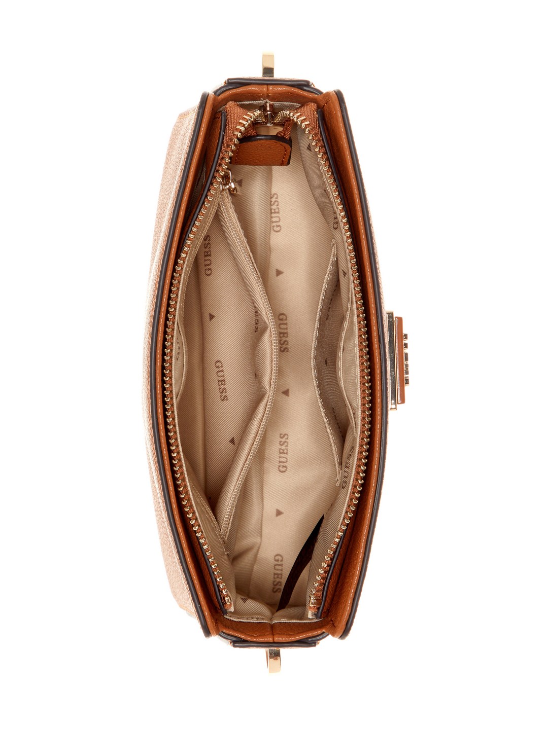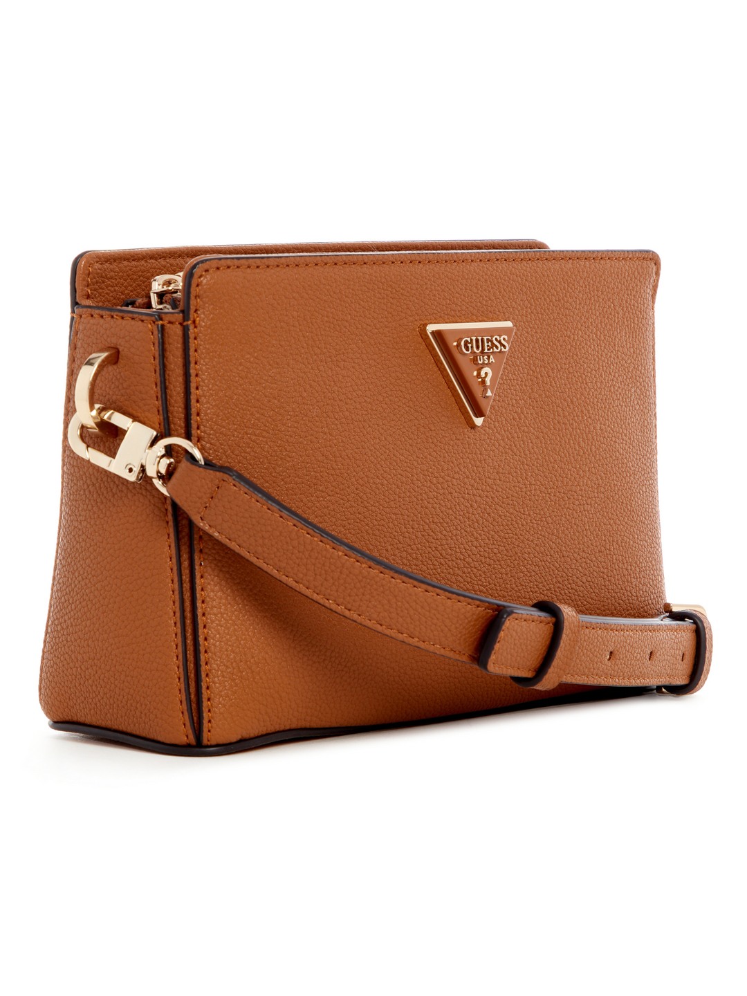 Guess Cognac Solid Meridian Top Zip Crossbody Bag