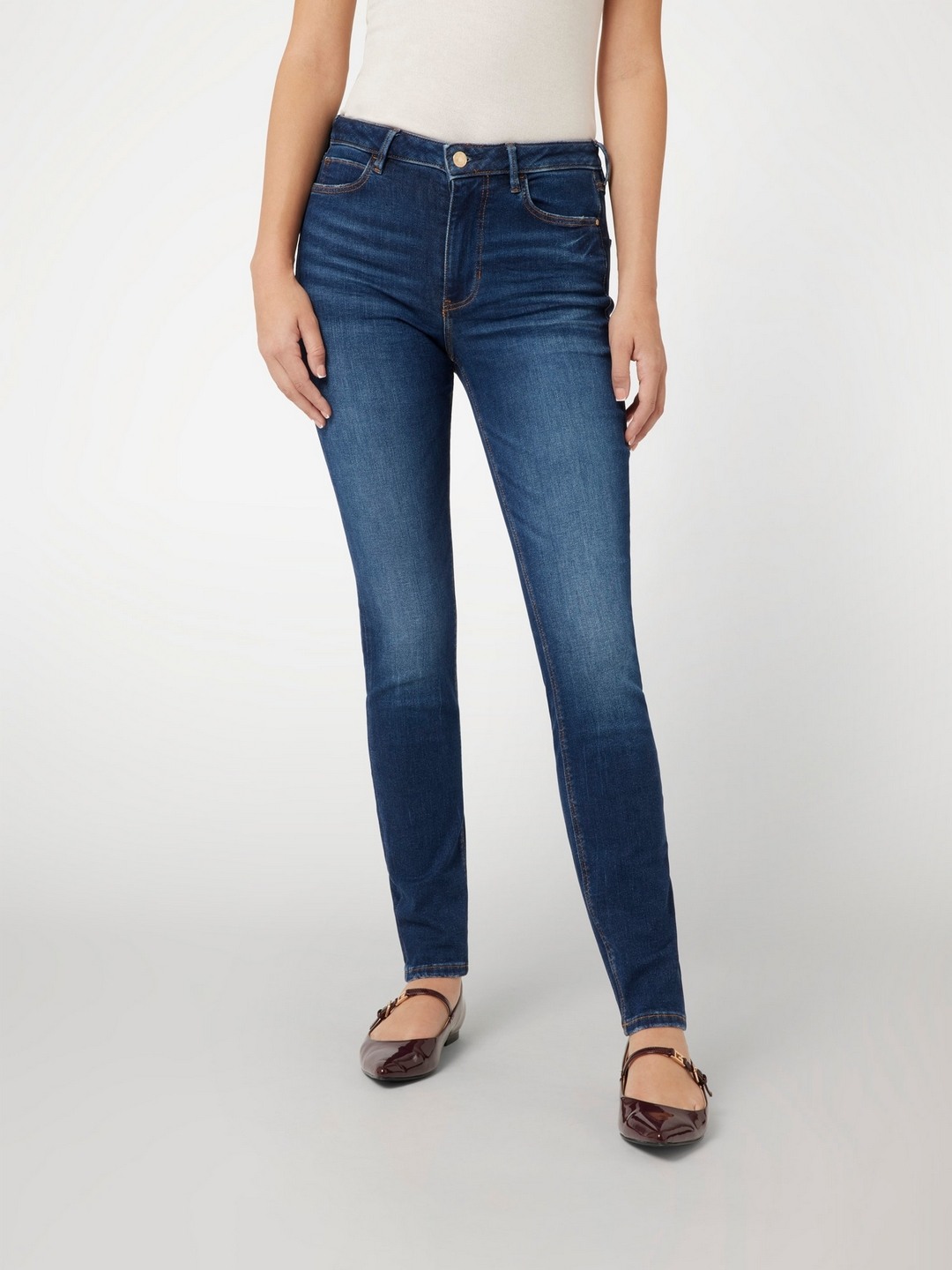 Discover the perfect blend of style and comfort with our blue skinny fit jeans for women. Crafted from a premium cotton blend fabric, these jeans offer a soft touch and lasting durability. The solid pattern provides a sleek and versatile look, making them an essential addition to your wardrobe. Featuring a mid-rise design, they sit comfortably on your waist while enhancing your silhouette. The button closure ensures a secure fit, allowing you to move with confidence throughout the day. Ideal for both casual outings and more polished occasions, these jeans effortlessly pair with any top or footwear for endless styling possibilities.