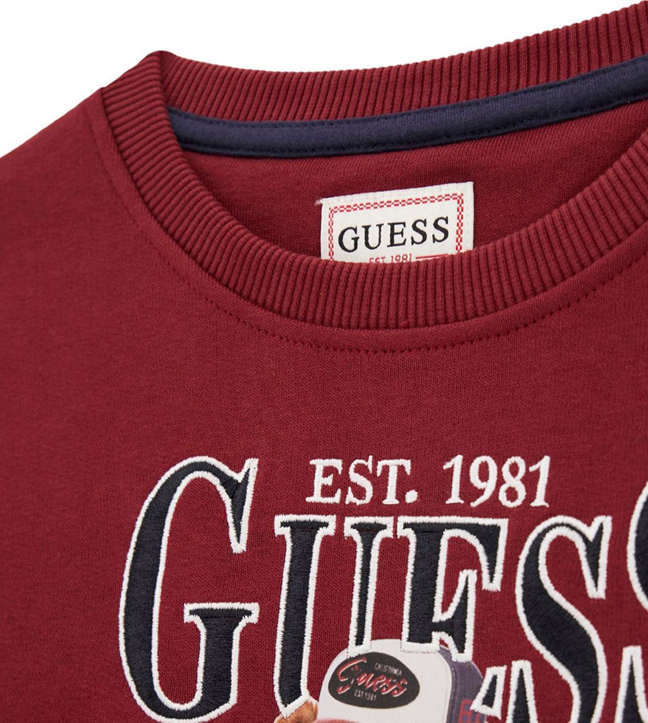 Guess Cotton Printed Maroon Sweatshirt for Boys