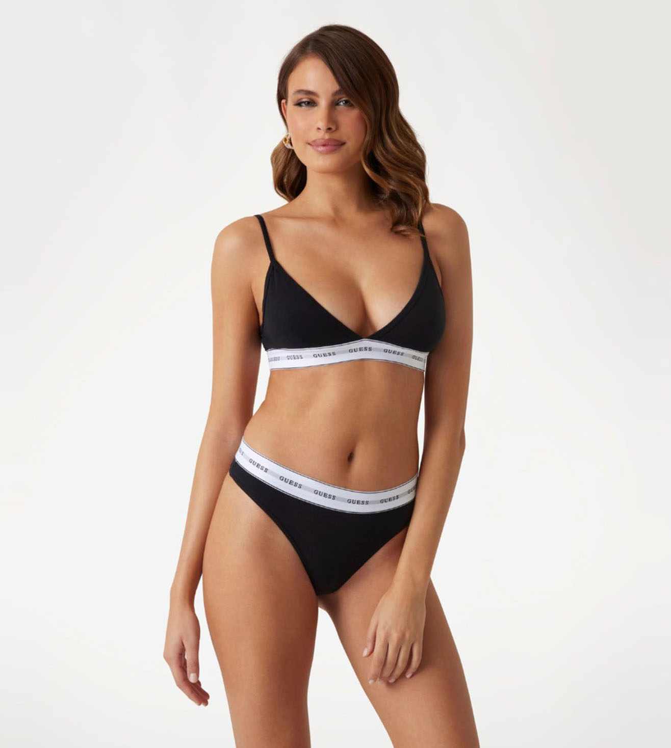 Elevate your lingerie collection with our Guess Cotton Half Coverage Textured Black Triangle Bra. This sleek and stylish bra features wired regular straps for added support and comfort. The half coverage design provides the perfect balance of coverage and allure, while the soft cotton fabric ensures all-day comfort. Whether you're looking for everyday wear or a special occasion piece, this bra is sure to become a staple in your wardrobe. Upgrade your undergarment game with this must-have piece from Guess.
