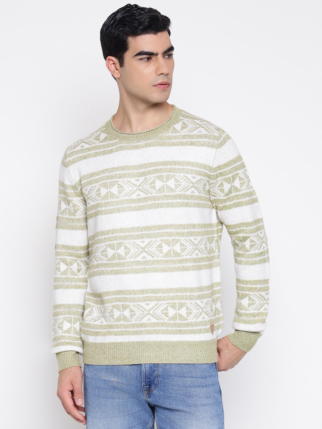 Cream Round Neck Full Sleeves Embroidered Sweater