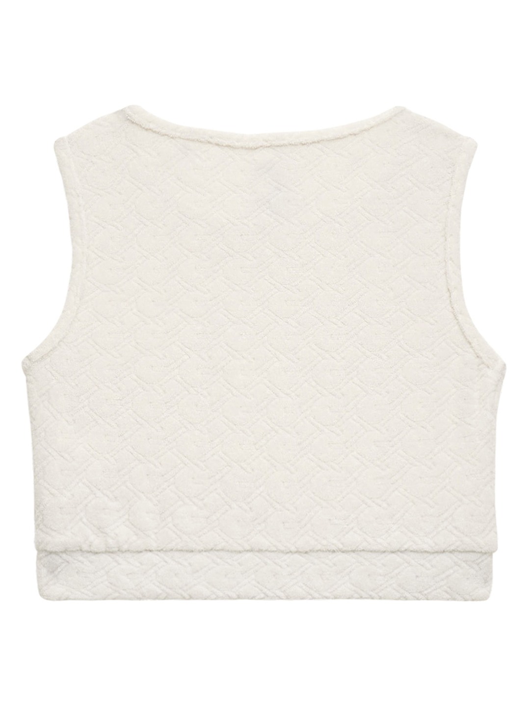 Cream Round Neck Sleeveless Self Design Top
