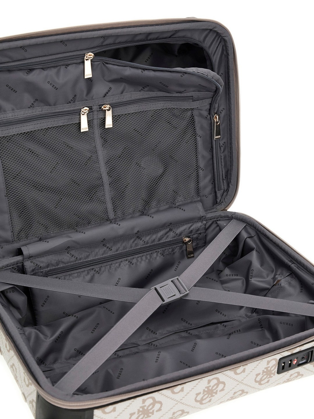 Introducing our stylish trolley in dark taupe logo color crafted from premium pu fabric. Designed for the modern man, this trolley features a sophisticated printed pattern that adds a touch of elegance to your travel ensemble. Its spacious interior ensures ample room for all your essentials while the durable construction promises longevity. Smooth-rolling wheels and a sturdy handle provide effortless maneuverability. Perfect for business trips or weekend getaways, this trolley combines functionality with a sleek design.