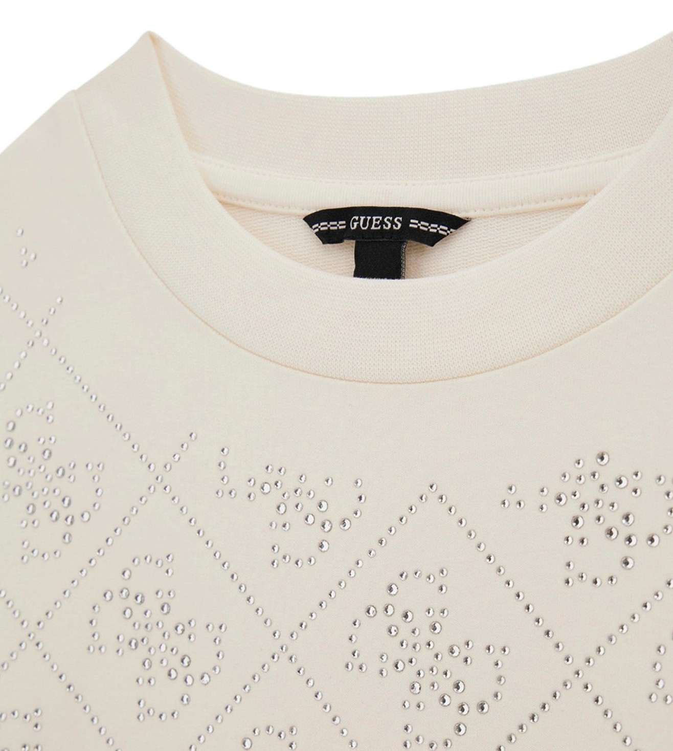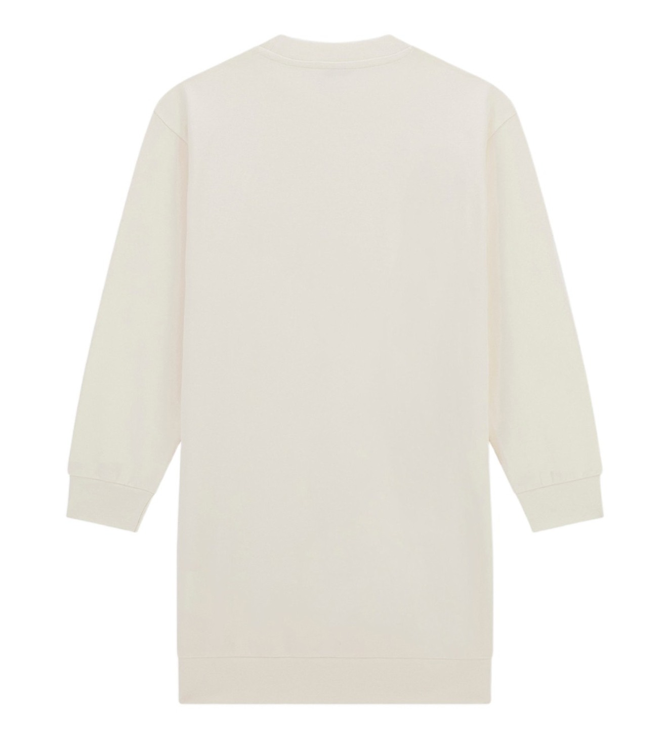Elevate her wardrobe with our chic sweater dress in a timeless cream hue. Designed for comfort and style, this dress features a relaxed fit adorned with a captivating geometric embellishment pattern. The long sleeves and round neck add a touch of elegance, making it perfect for any occasion. Crafted from a soft cotton blend fabric, it ensures all-day comfort. The convenient pull-on closure makes dressing a breeze. Ideal for layering or wearing solo, this versatile piece is a must-have for every girl's closet.