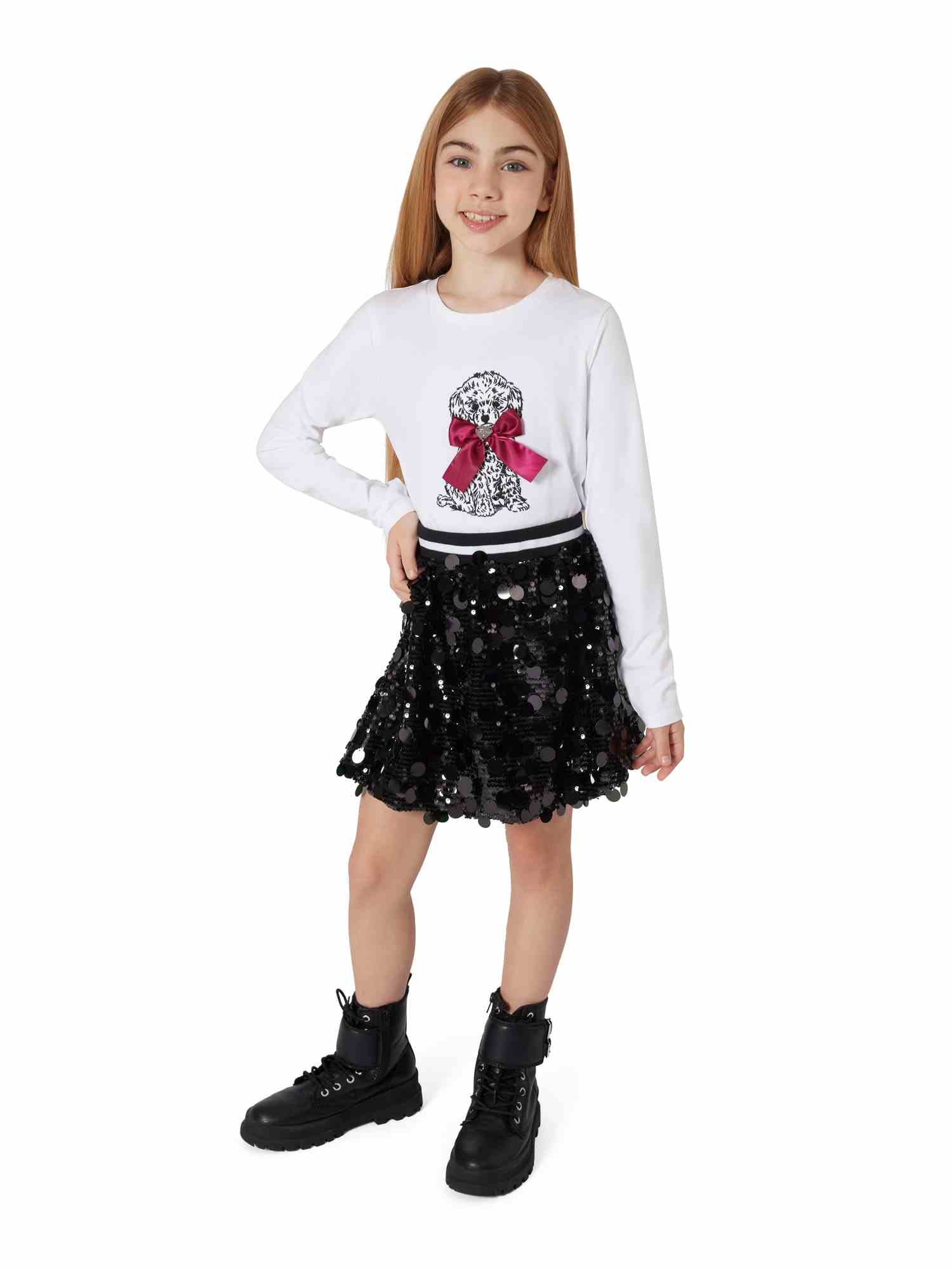 Guess Girls Pure White Solid Regular Fit T-Shirt