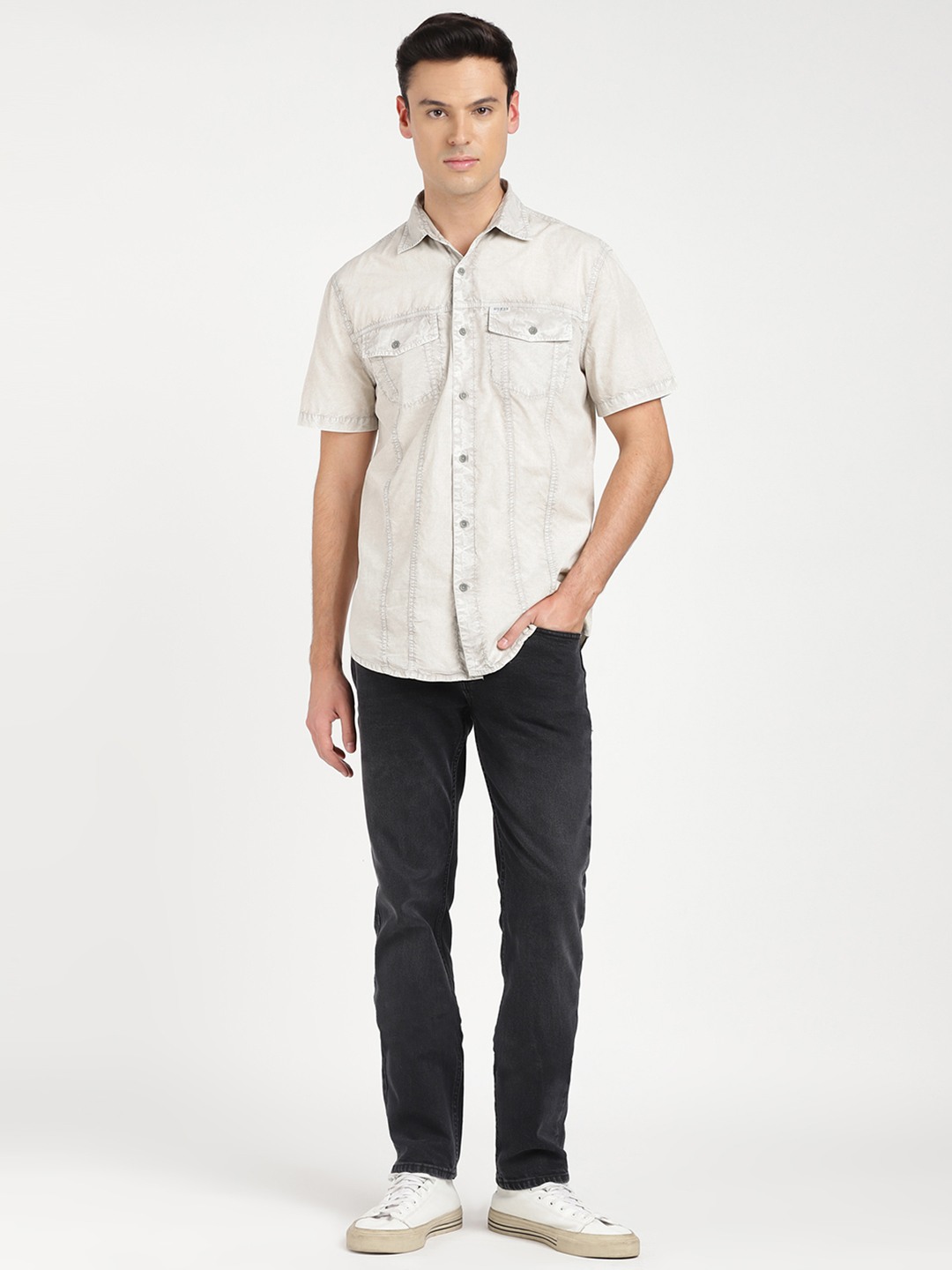 Elevate your style with Guess shirts, featuring bold prints, contemporary cuts, and premium fabrics. From classic button-downs to trendy graphic tees, find the perfect shirt to express your unique personality.