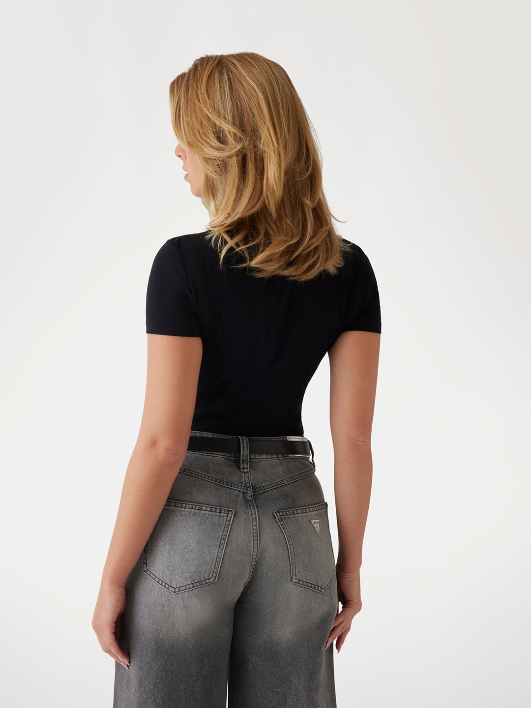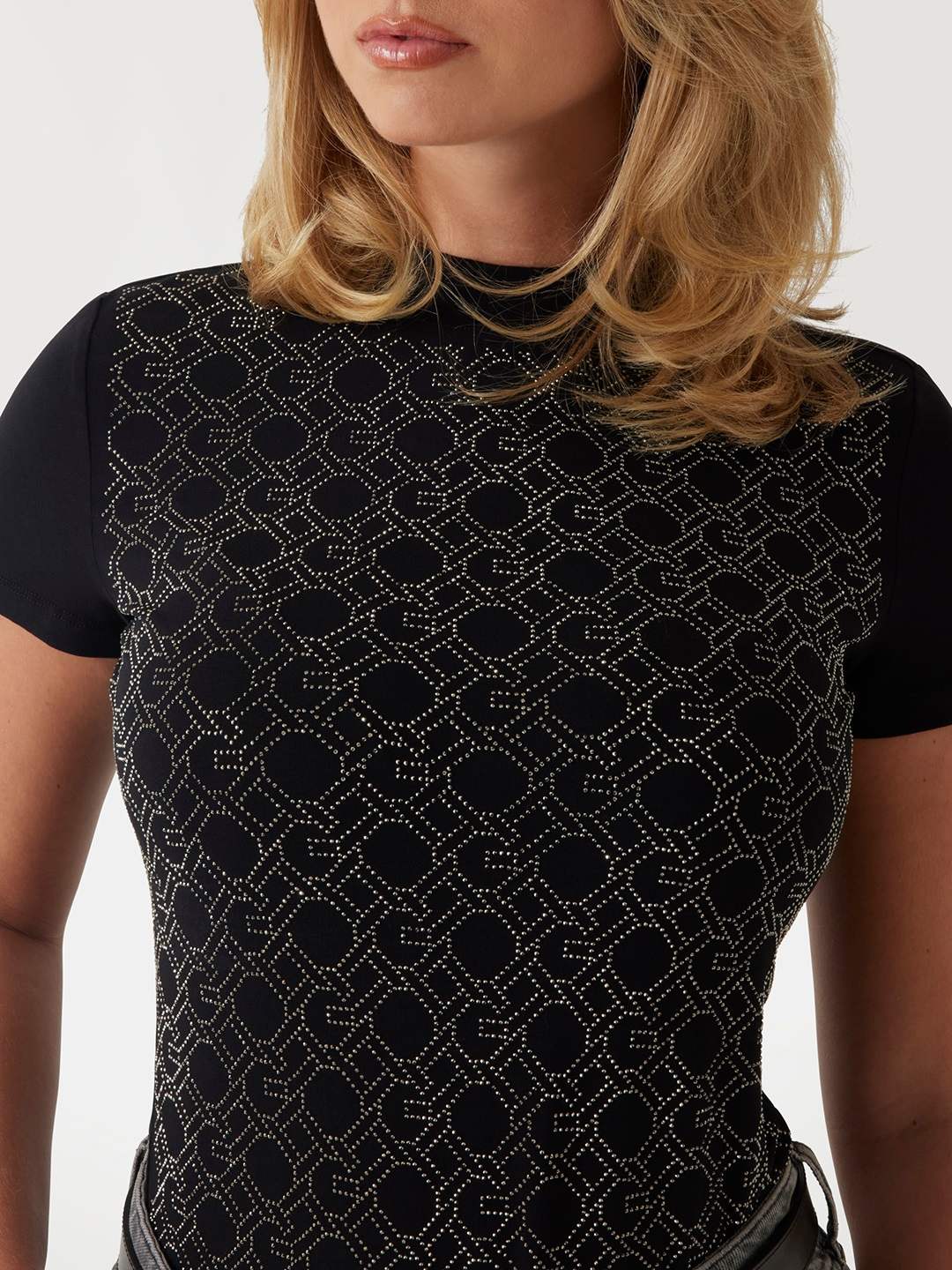 Elevate your style with our black slim-fit T-shirt, featuring a striking geometric pattern. Crafted from a soft cotton blend, it offers comfort and breathability. The short sleeves and crew neck design provide a classic look, while the slip-on closure ensures easy wear. Perfect for any casual or chic ensemble.
