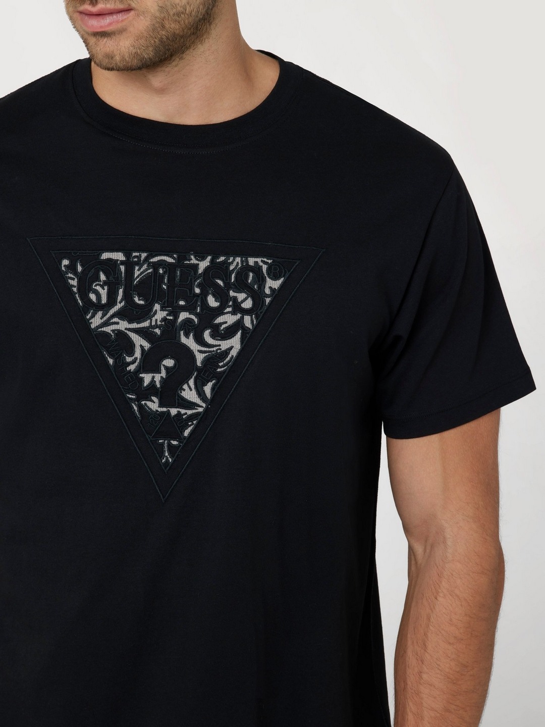 Elevate your wardrobe with our black T-shirt, featuring a regular embroidery pattern. Crafted from a soft cotton-modal blend, it offers ultimate comfort. The short sleeves and round neck design ensure a classic fit, while the pull-on closure provides ease of wear. Perfect for any casual occasion, this tee is a must-have.