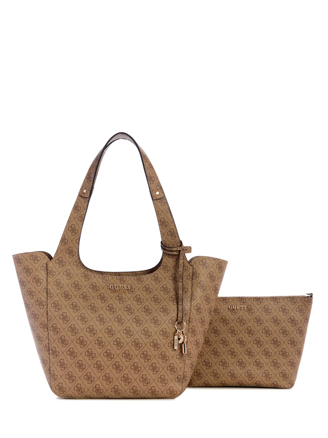 Guess Latte Logo Printed Calista 2 In 1 Tote Bag