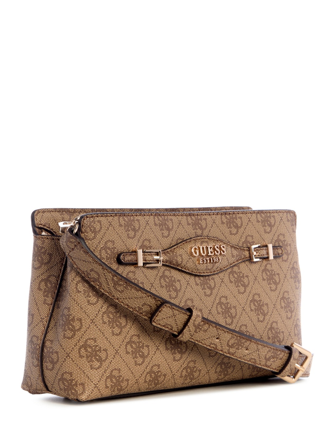 Guess Latte Logo Printed Katya Top Zip Crossbody Bag