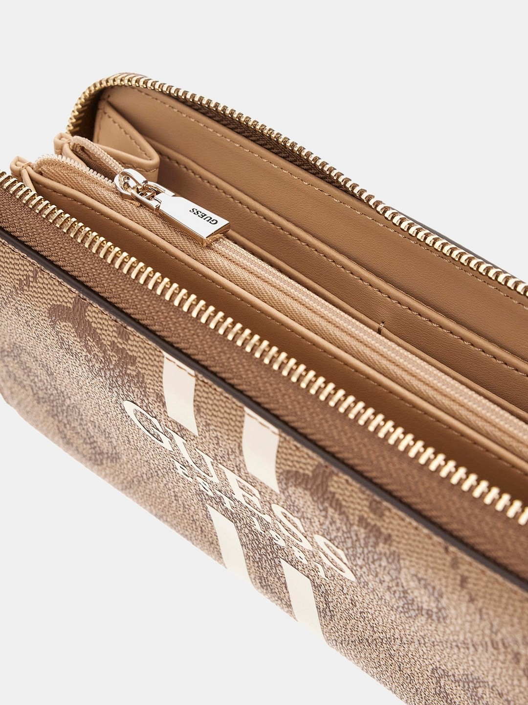 Guess Latte Logo Printed Laurel Large Zip Around Wallet