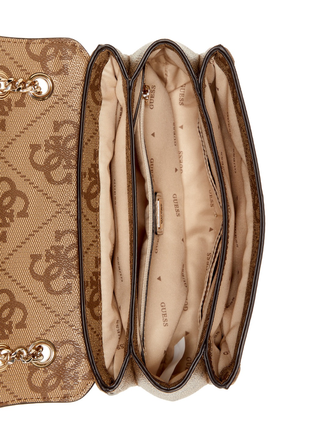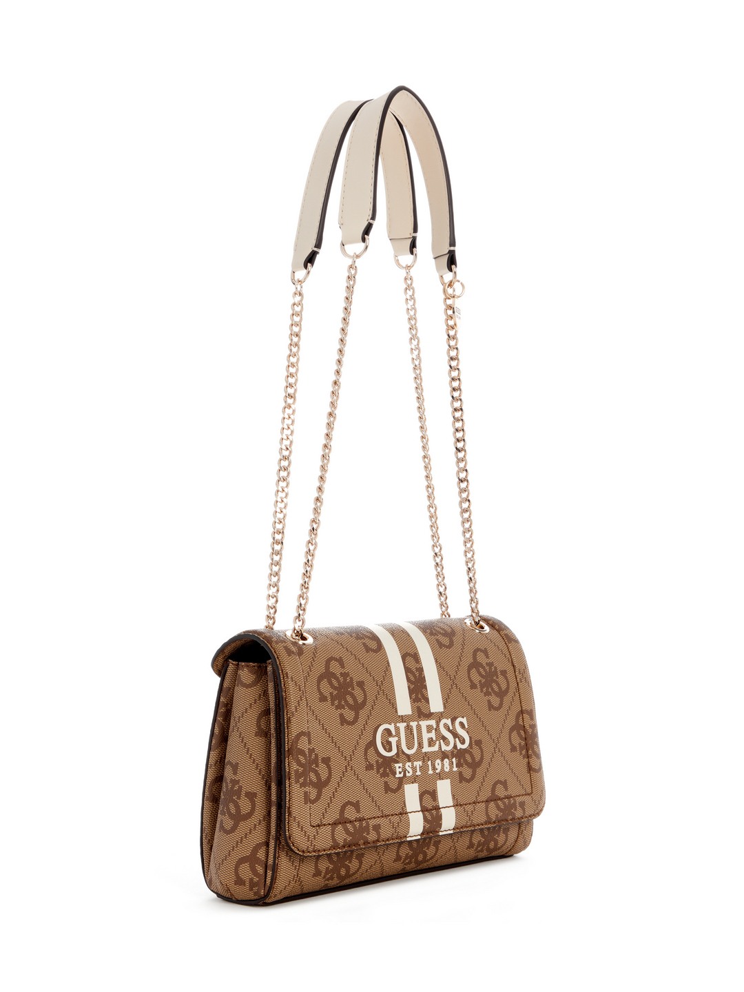 Guess Latte Logo Printed Noelle Convertible Flap Crossbody Bag