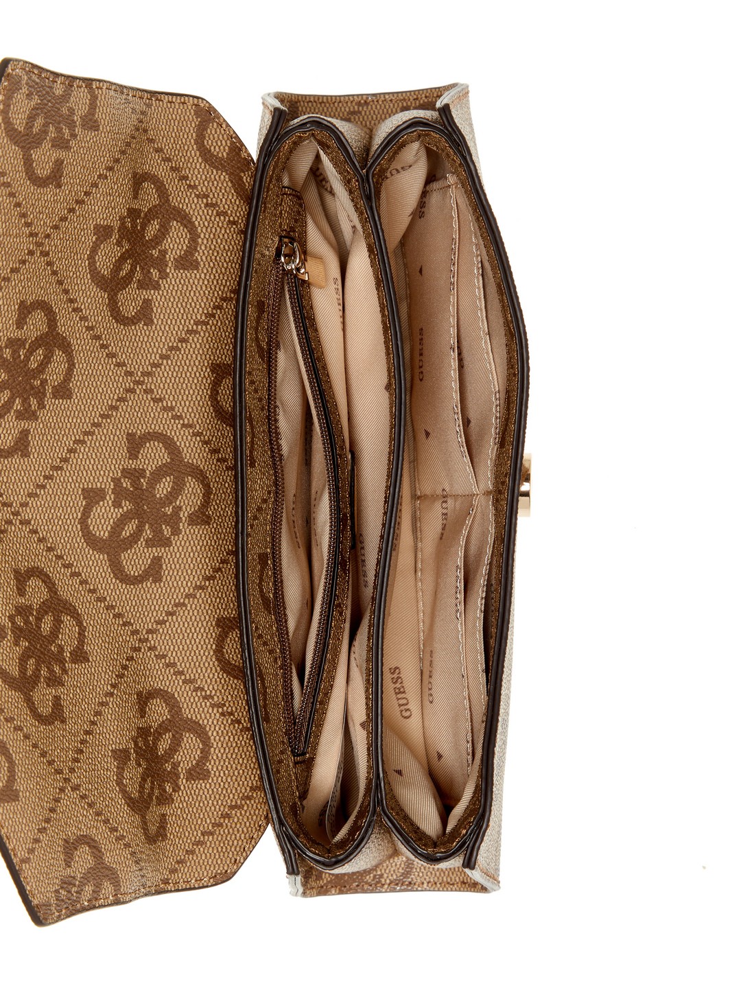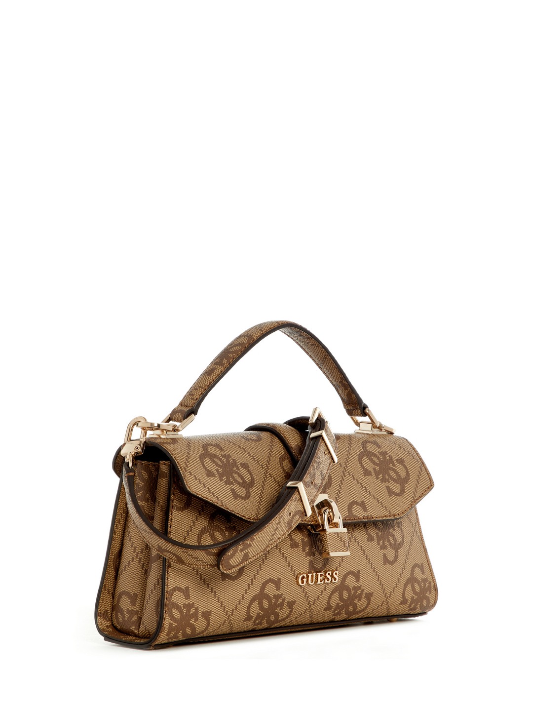 Guess Latte Logo Printed Queensland Top Handle Flap Crossbody Bag