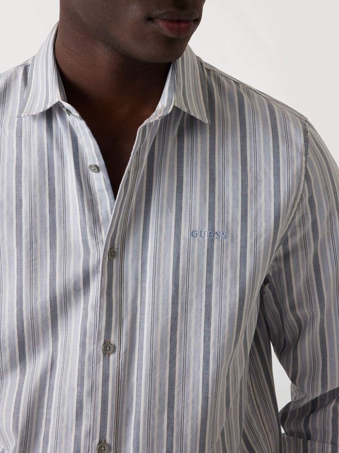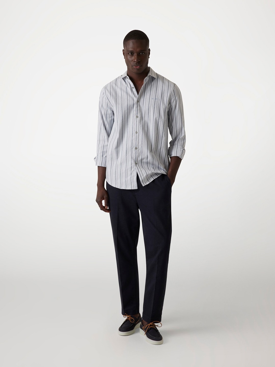 Elevate your wardrobe with this classic white shirt, featuring a regular stripe pattern. Crafted from a comfortable cotton blend, it offers long sleeves and a stylish collar neck. The button closure adds a touch of sophistication, making it perfect for both formal and casual occasions. Ideal for the modern man.