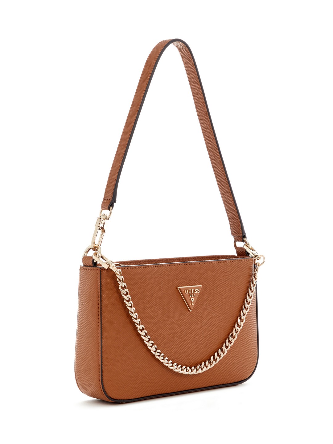 Guess Light Cognac Textured Noelle Mini Top Zip Shoulder Bag