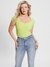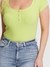 Lime Yellow Solid Henley Neck Short Sleeves Top