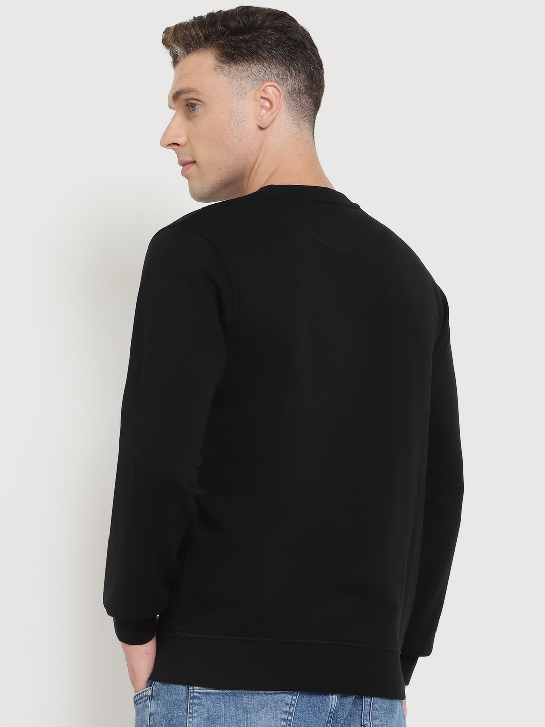 Black Printed Round Neck Full Sleeves Pullover Style Sweatshirt