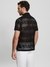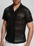 Black Self Design Cuban Collar Short Sleeves Shirt