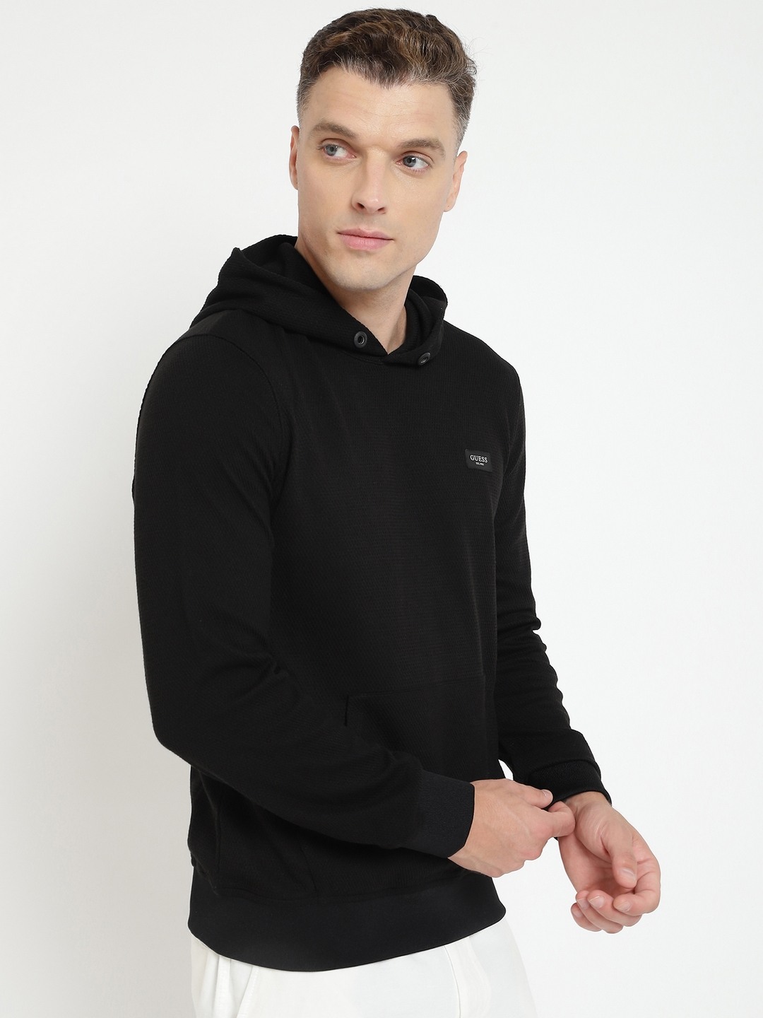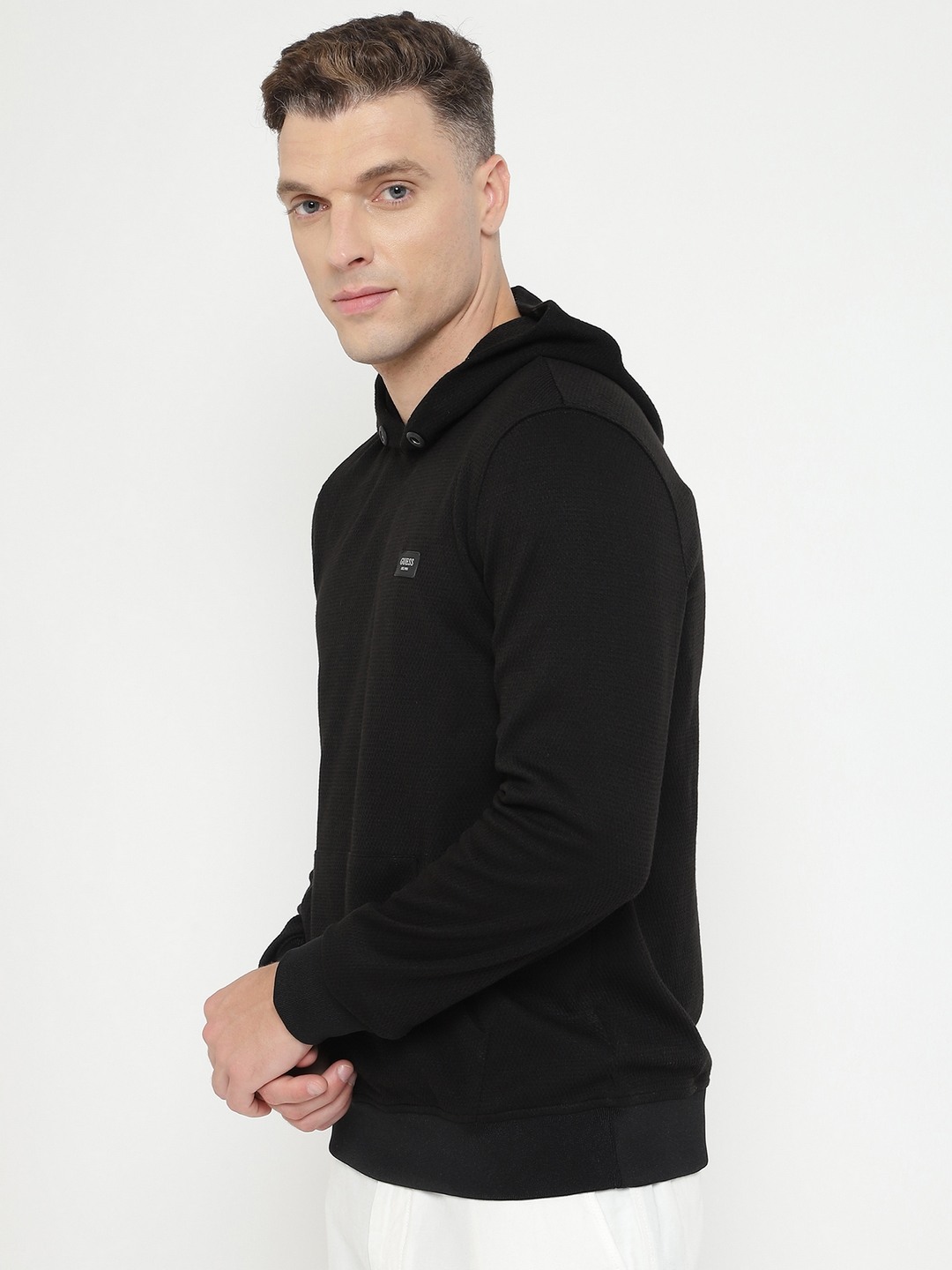 Black Solid Hooded Full Sleeves Pullover Style Sweatshirt