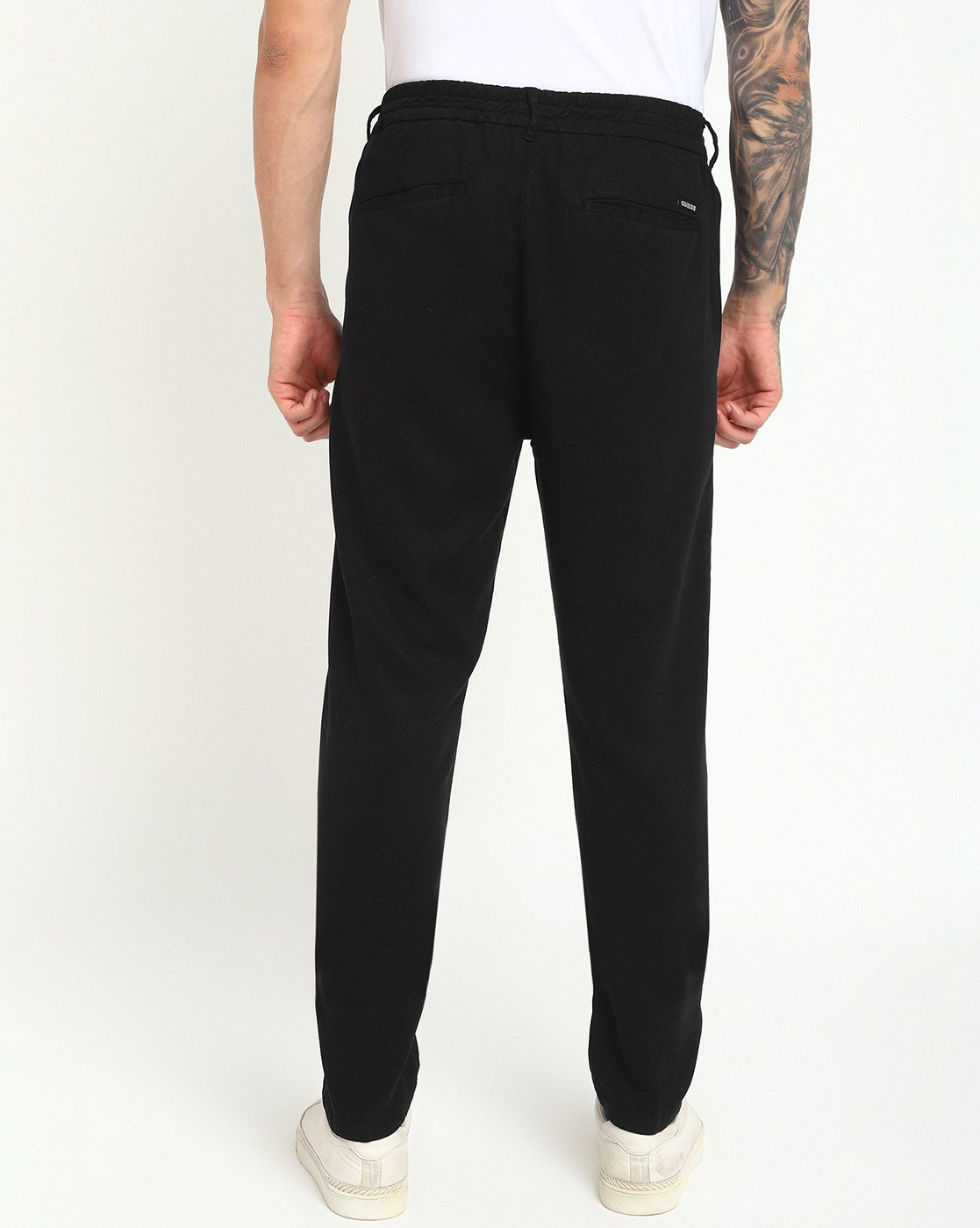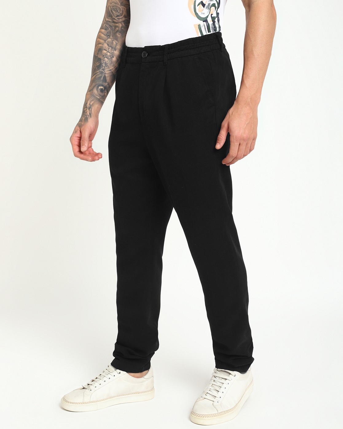 Men Black Solid Mid-Rise Regular Length Trouser
