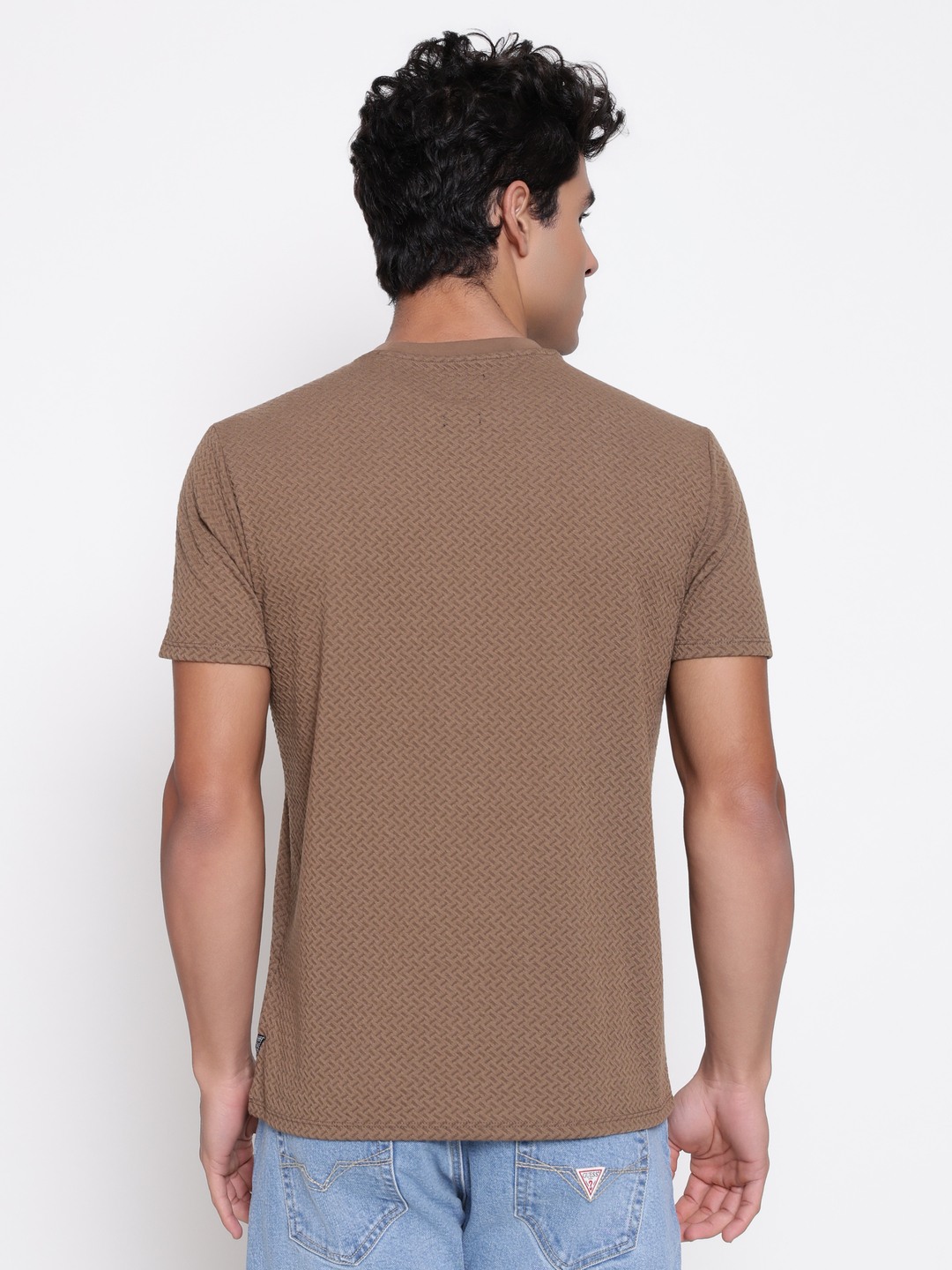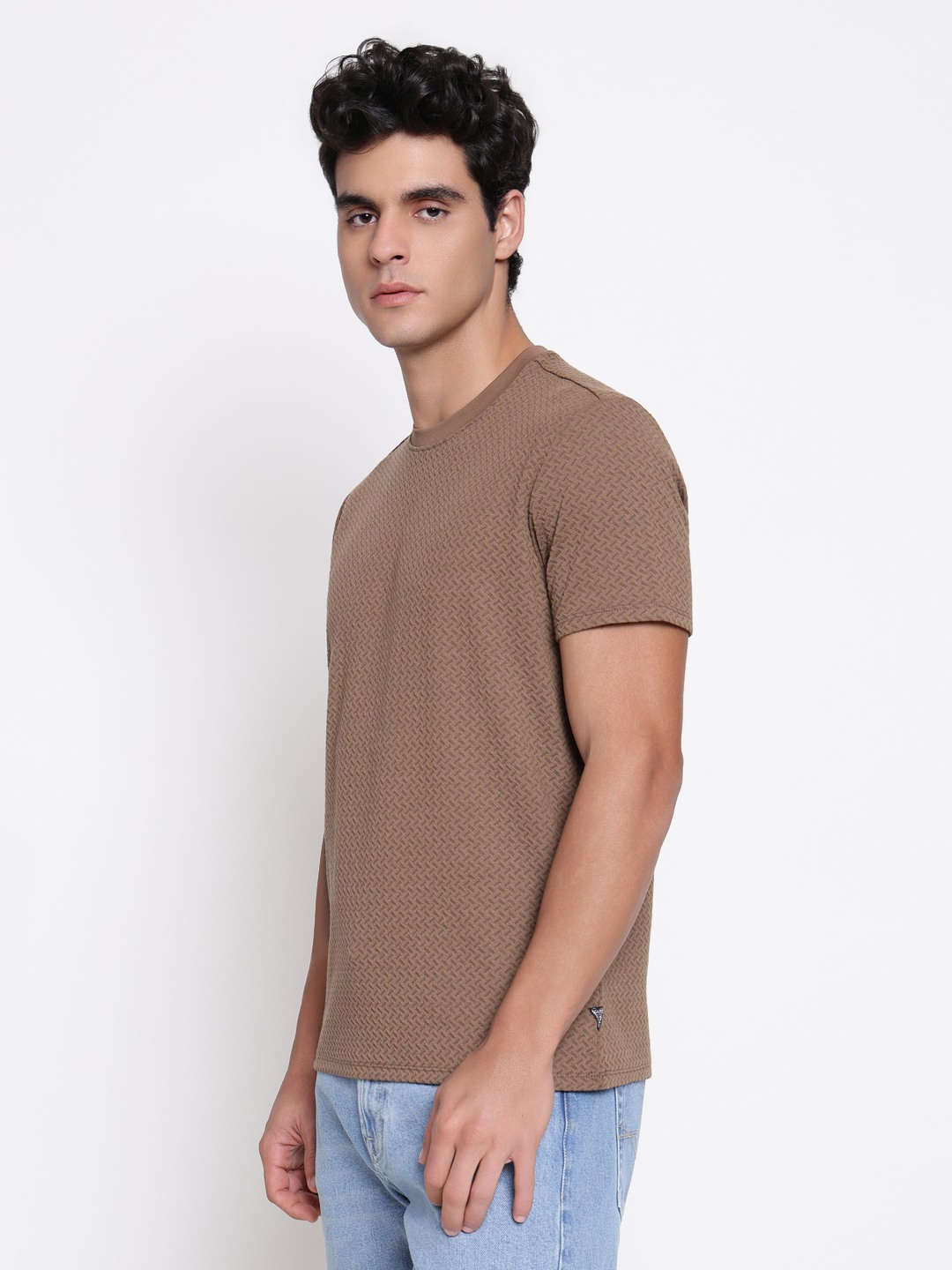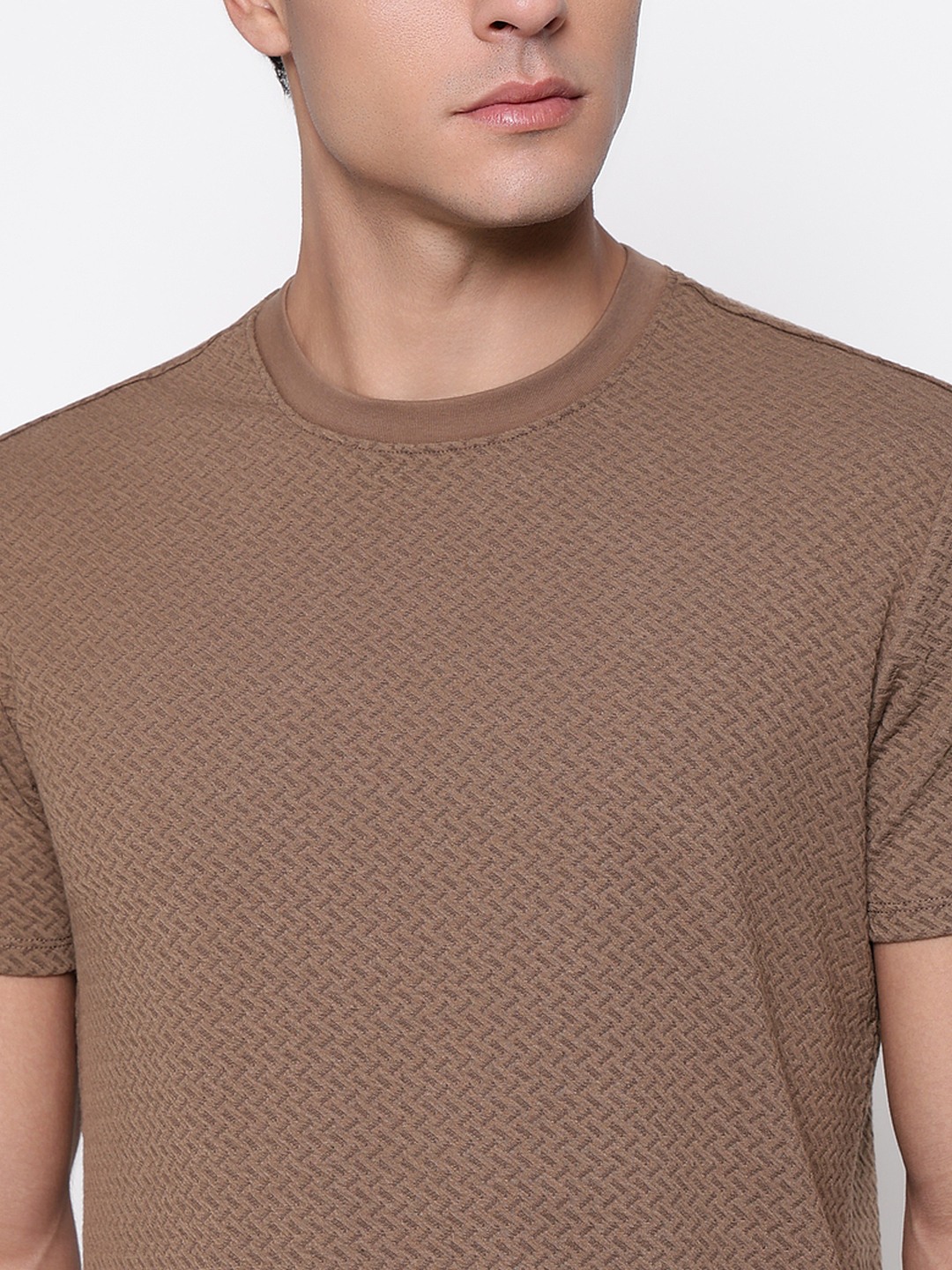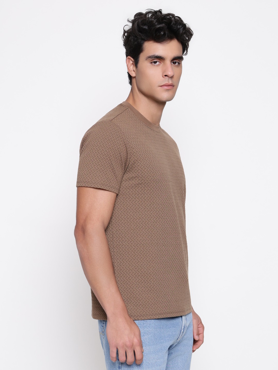 The blake knit t-shirt in brown offers a comfortable regular fit with a textured pattern that adds visual interest. Designed for men, it features short sleeves and a round neck for a classic look. Made from lightweight polyester fabric, it provides durability and ease of movement. The pull-on closure ensures quick and simple wear. Perfect for casual outings or relaxed days, this t-shirt combines style and comfort effortlessly, making it a versatile addition to any wardrobe.