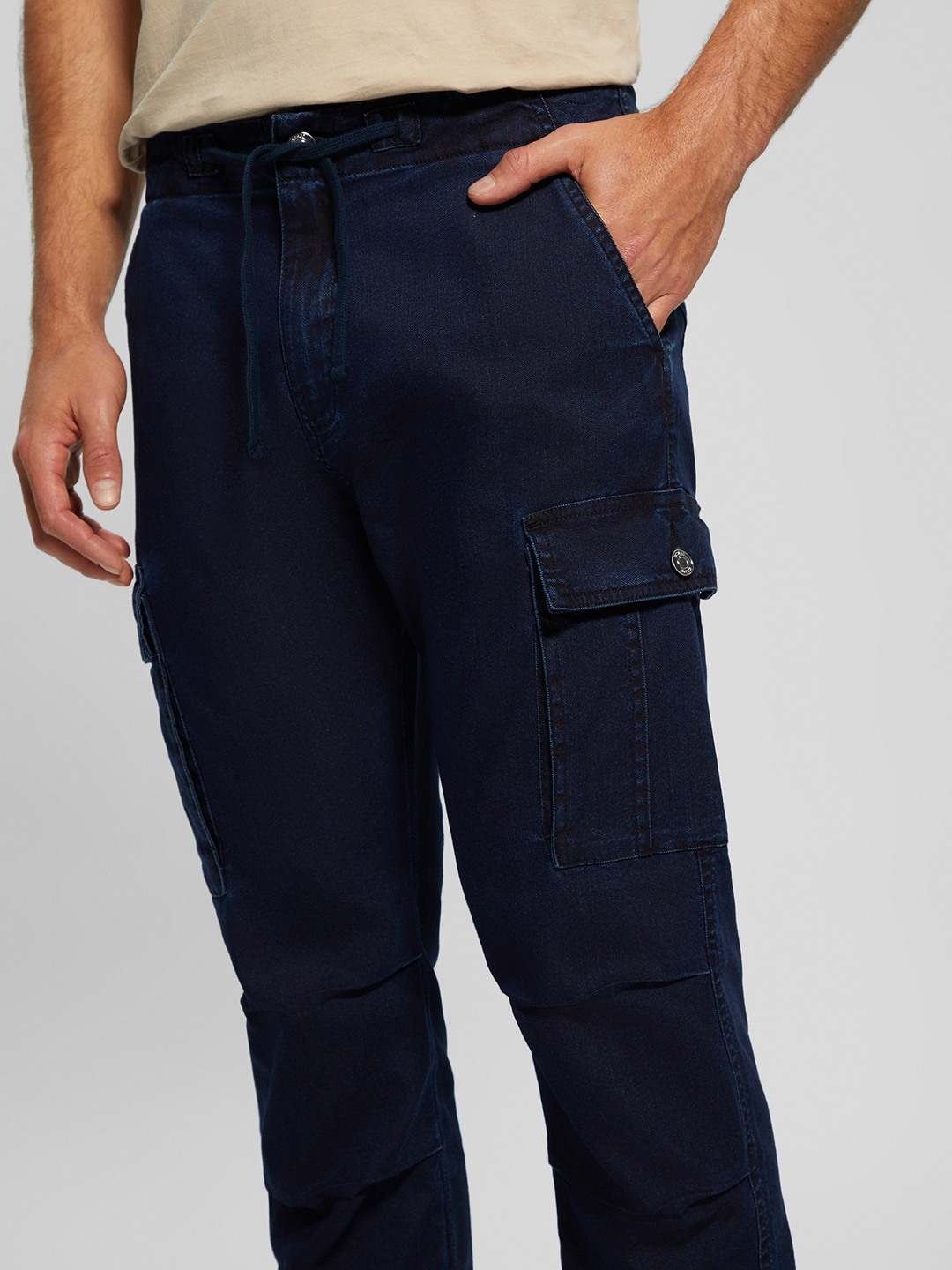 Blue Solid Mid-Rise Full Length Cargo Jeans