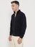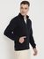 Blue Solid Stand Collar Full Sleeves Front-open Sweatshirt