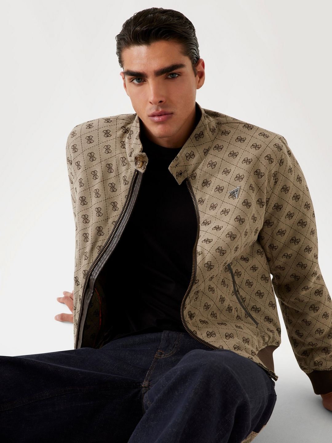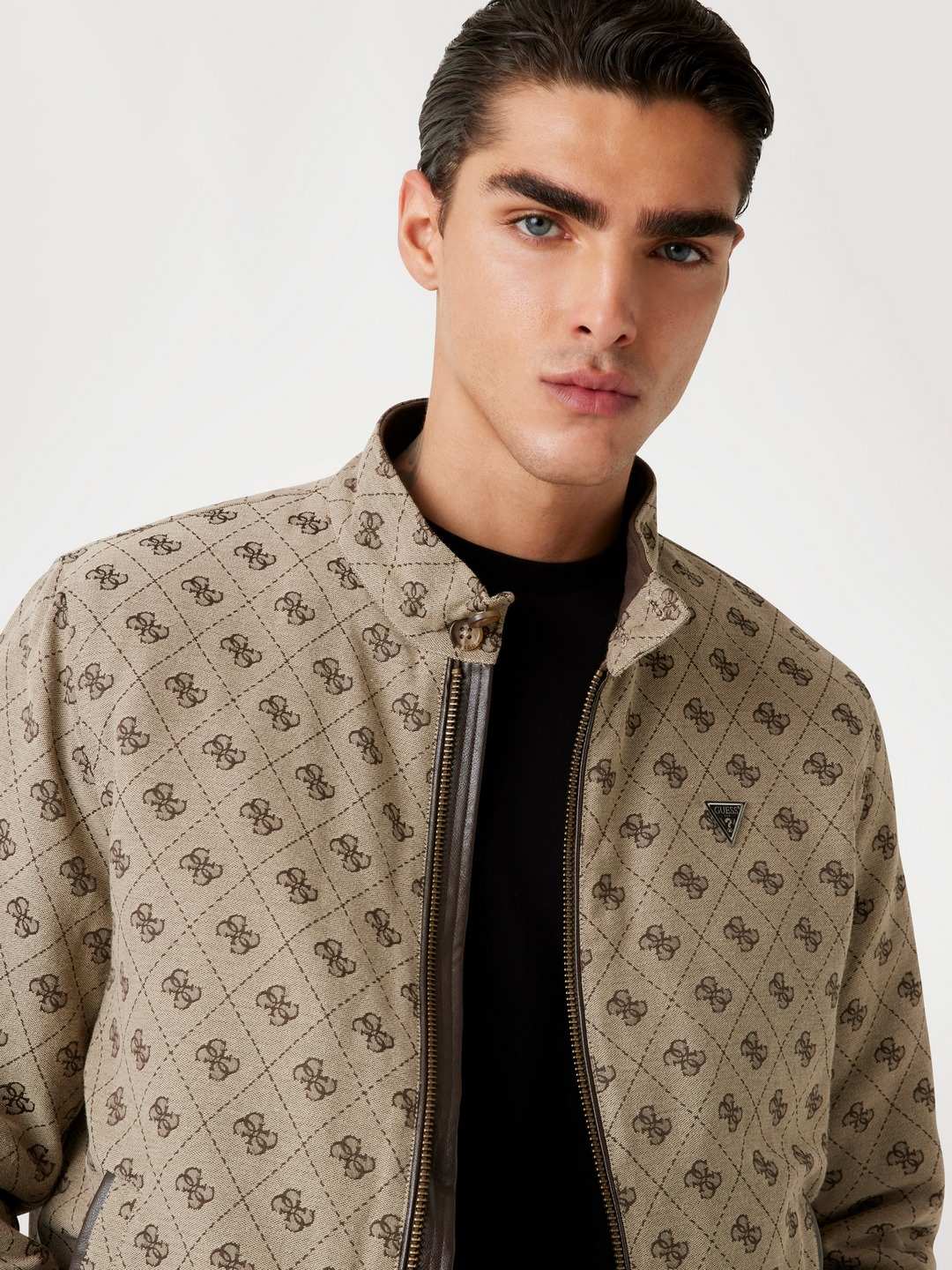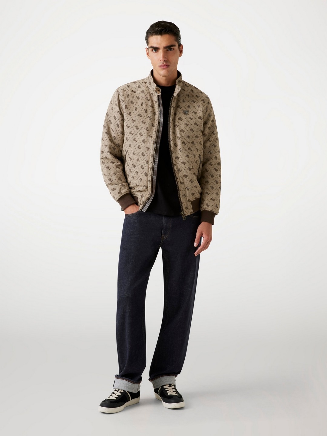 Elevate your style with our men's beige jacket, featuring a sophisticated brand logo pattern. Designed for a regular fit, this jacket offers both comfort and a sleek silhouette. The long sleeves and band collar add a touch of modern elegance, making it perfect for any occasion. Crafted from a premium cotton blend fabric, it ensures breathability and durability. The convenient zip closure provides ease of wear while maintaining a polished look. Ideal for layering, this jacket is a versatile addition to your wardrobe.