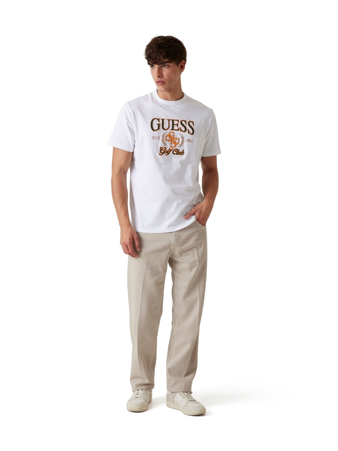 Elevate your casual wardrobe with our classic white T-shirt, designed for the modern man who values comfort and style. Featuring a regular fit, this tee showcases a subtle yet striking brand logo pattern that adds a touch of sophistication. Crafted from premium cotton fabric, it ensures breathability and softness for all-day wear. The short sleeves and round neck offer a timeless silhouette, while the convenient pull-on closure makes dressing effortless. Perfect for any occasion, this versatile T-shirt is a must-have staple.
