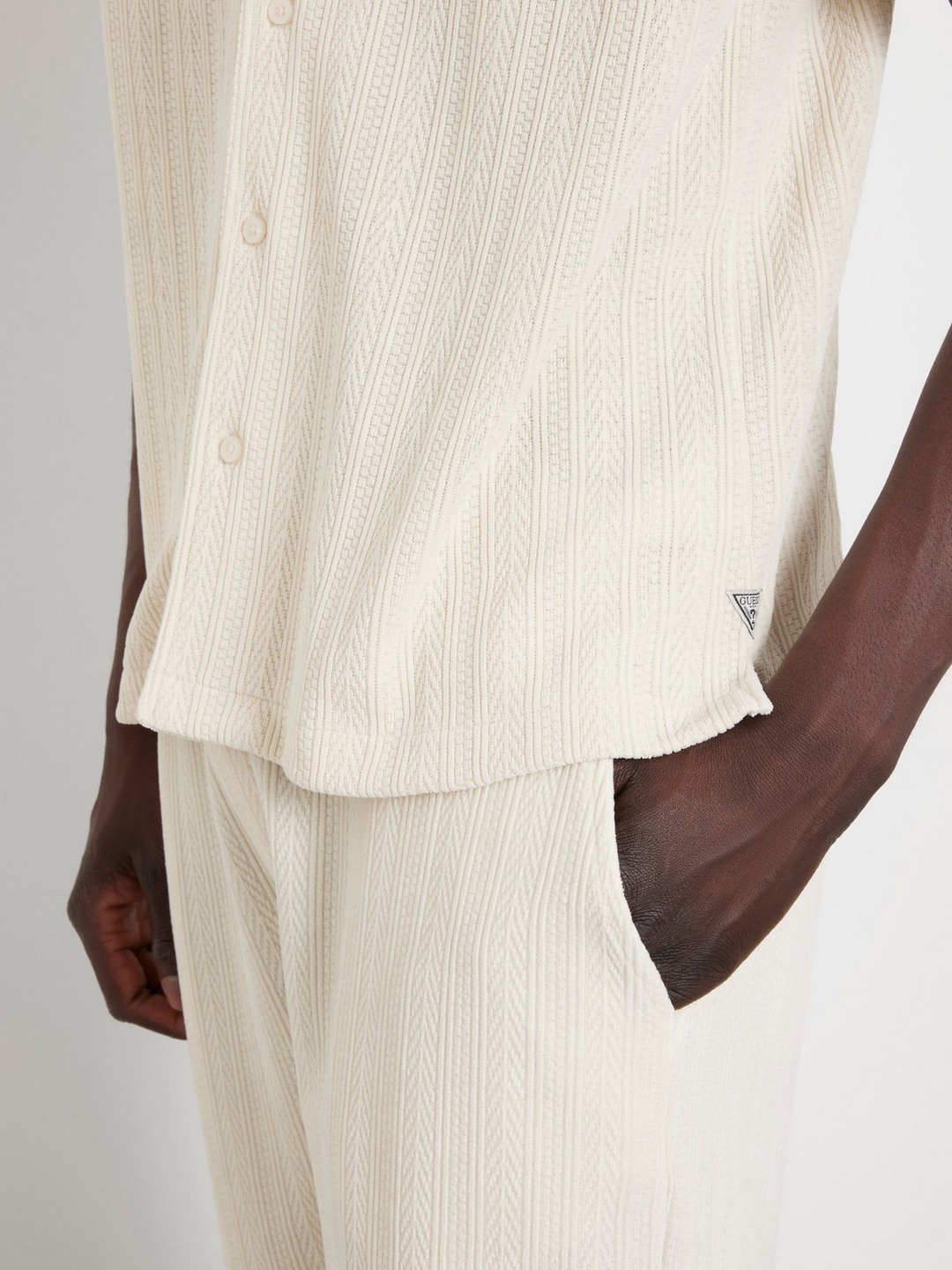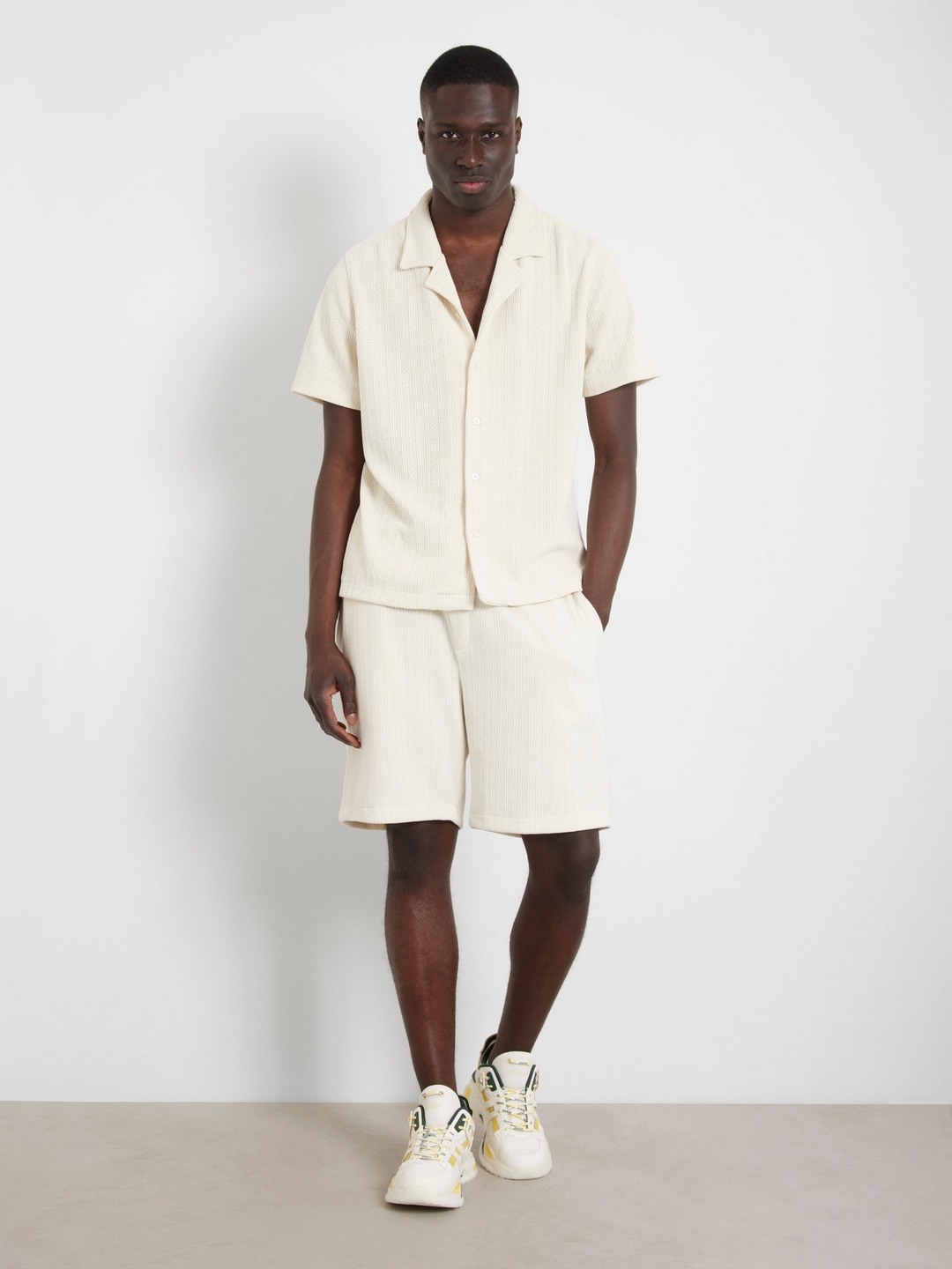 Cream Solid Cuban Collar Short Sleeves Shirt