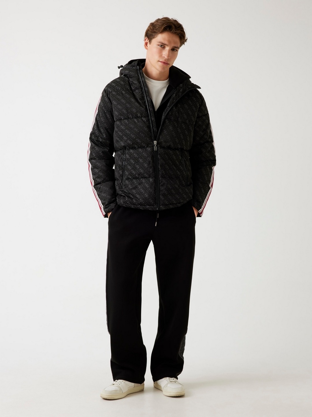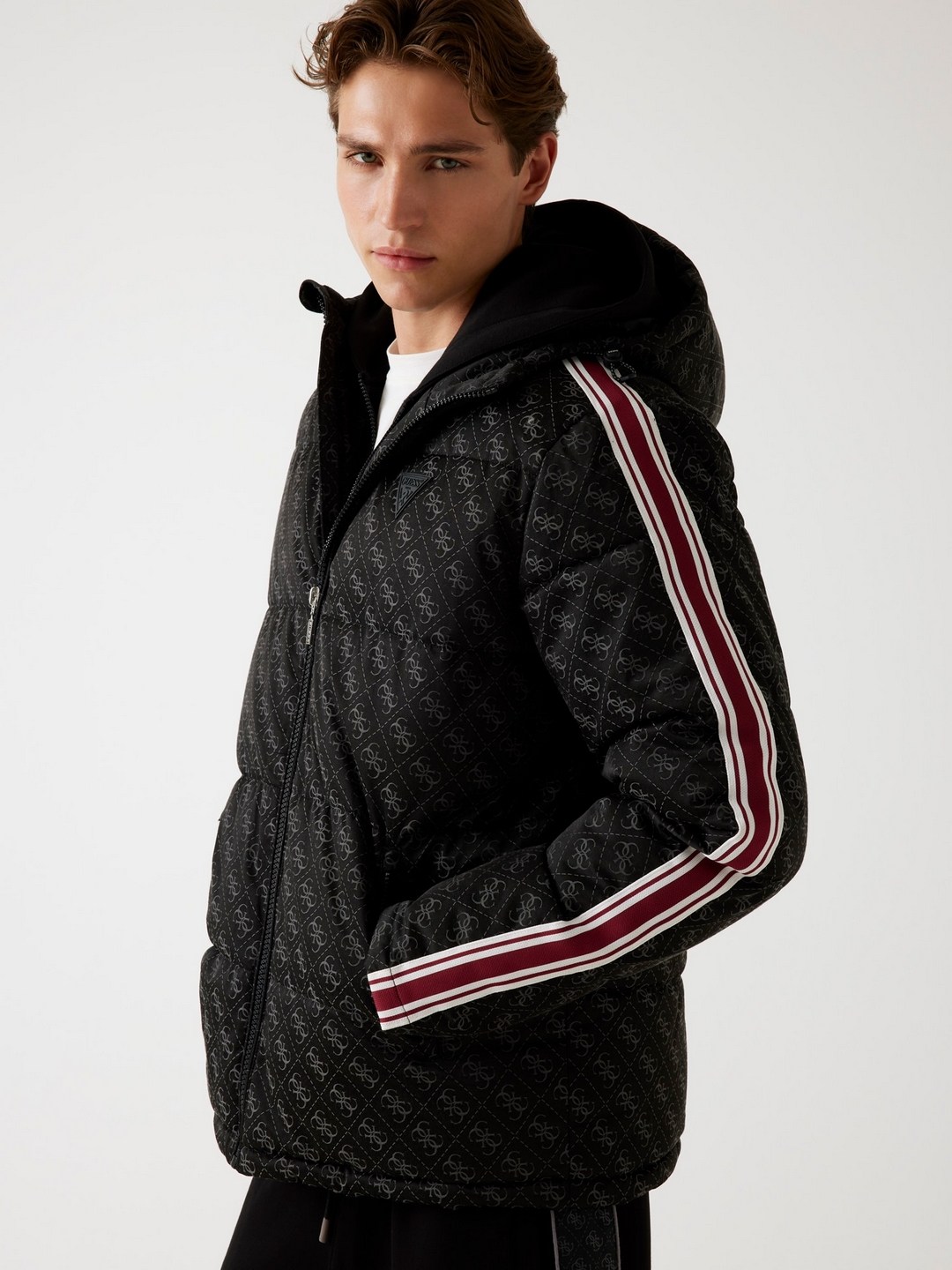 Elevate your style with our sleek black bomber jacket, featuring a striking geometric print pattern that adds a modern edge to any outfit. Designed for the contemporary man, this jacket boasts long sleeves and a practical hood, offering both style and functionality. Crafted from a high-quality polyester blend fabric, it ensures comfort and durability. The convenient zip closure provides easy wearability, making it a versatile addition to your wardrobe. Perfect for any occasion, this bomber jacket is a must-have for fashion-forward individuals.