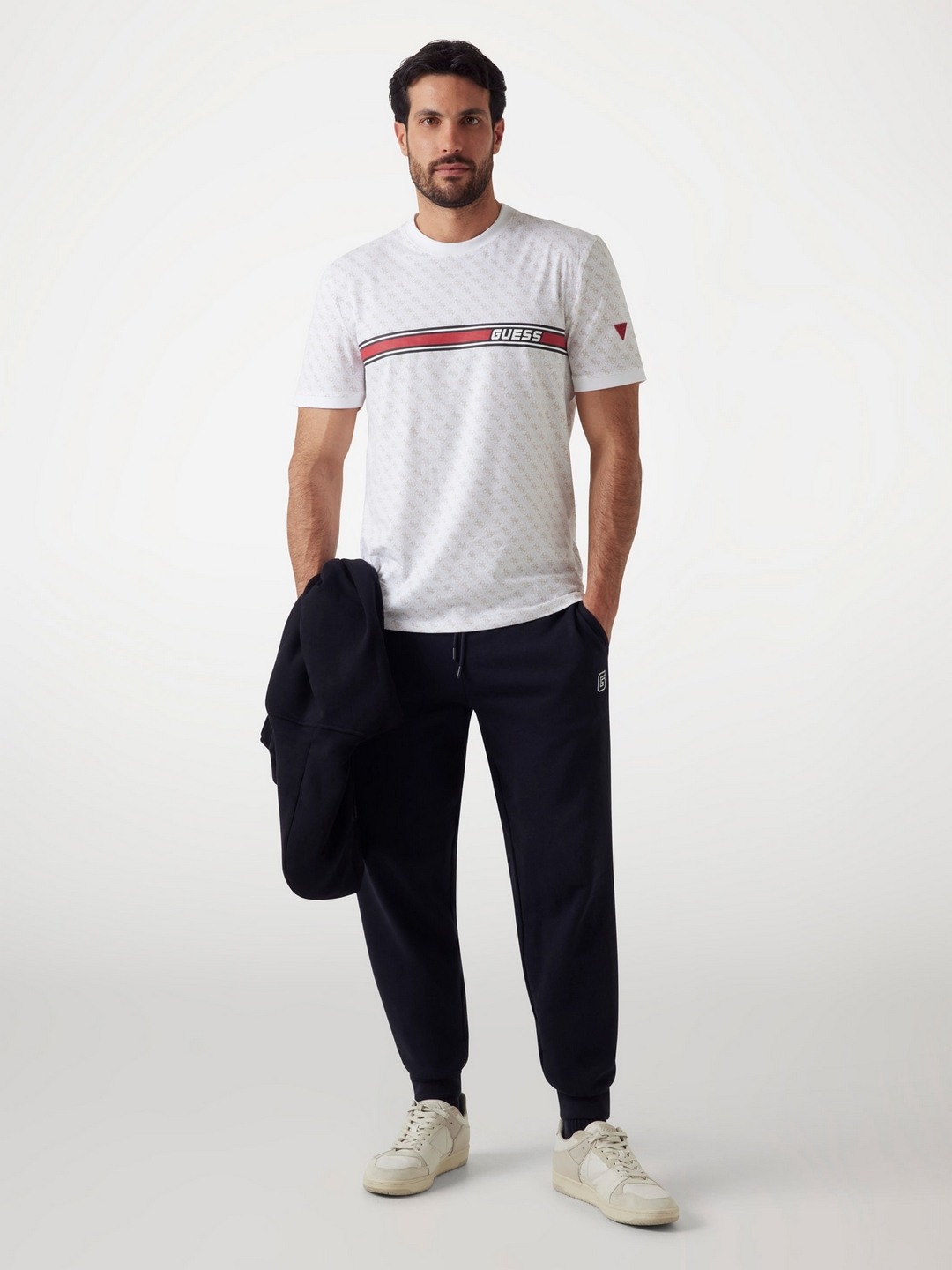 Elevate your casual wardrobe with our stylish white T-shirt, featuring a striking geometric print pattern that adds a modern edge to any outfit. Designed for comfort and versatility, this tee boasts short sleeves and a classic round neck, making it perfect for everyday wear. Crafted from a premium cotton blend fabric, it offers a soft, breathable feel that keeps you cool and comfortable all day long. The slip-on closure ensures easy wear, while the contemporary design makes it a must-have staple for any fashion-forward man.