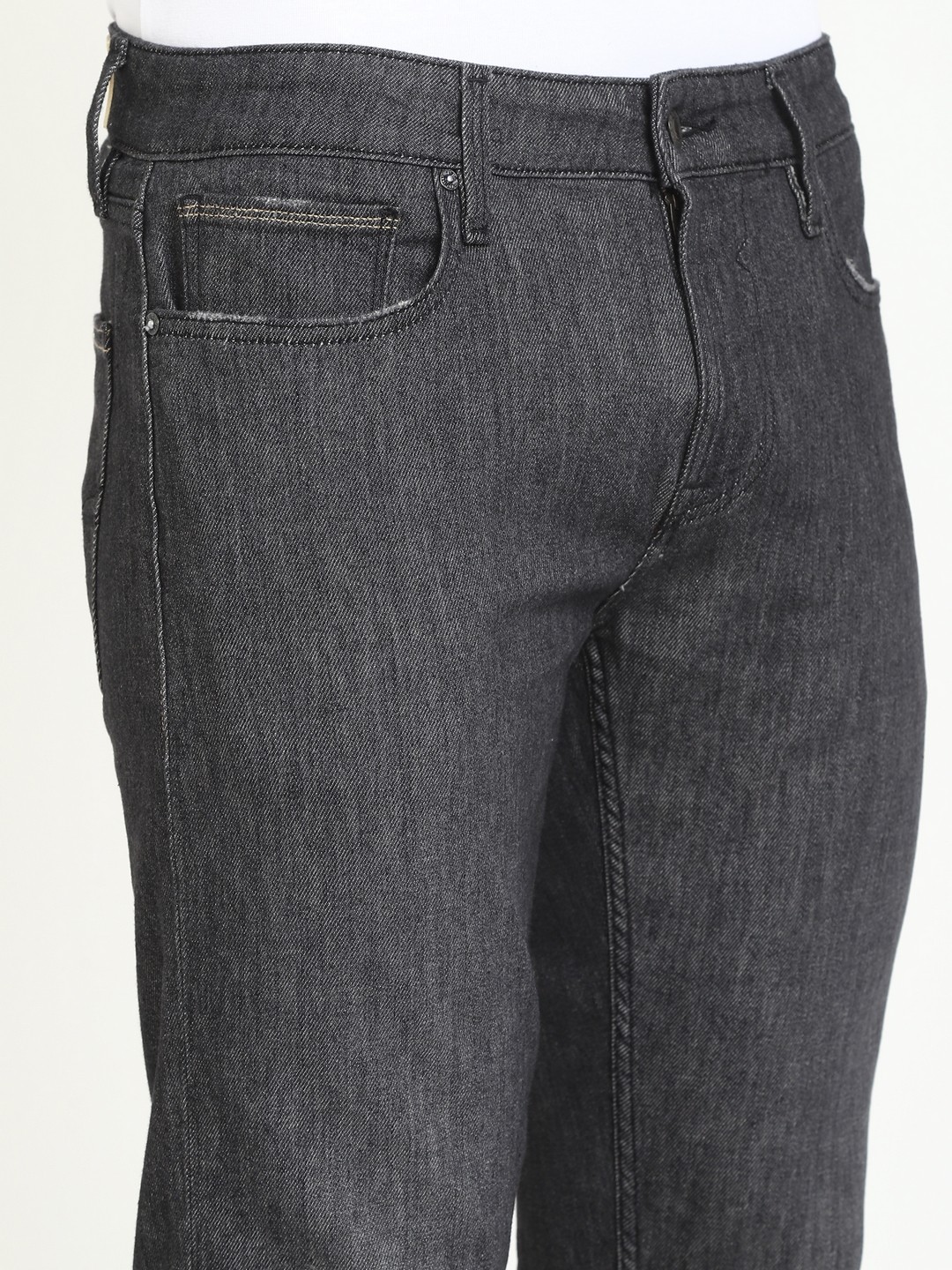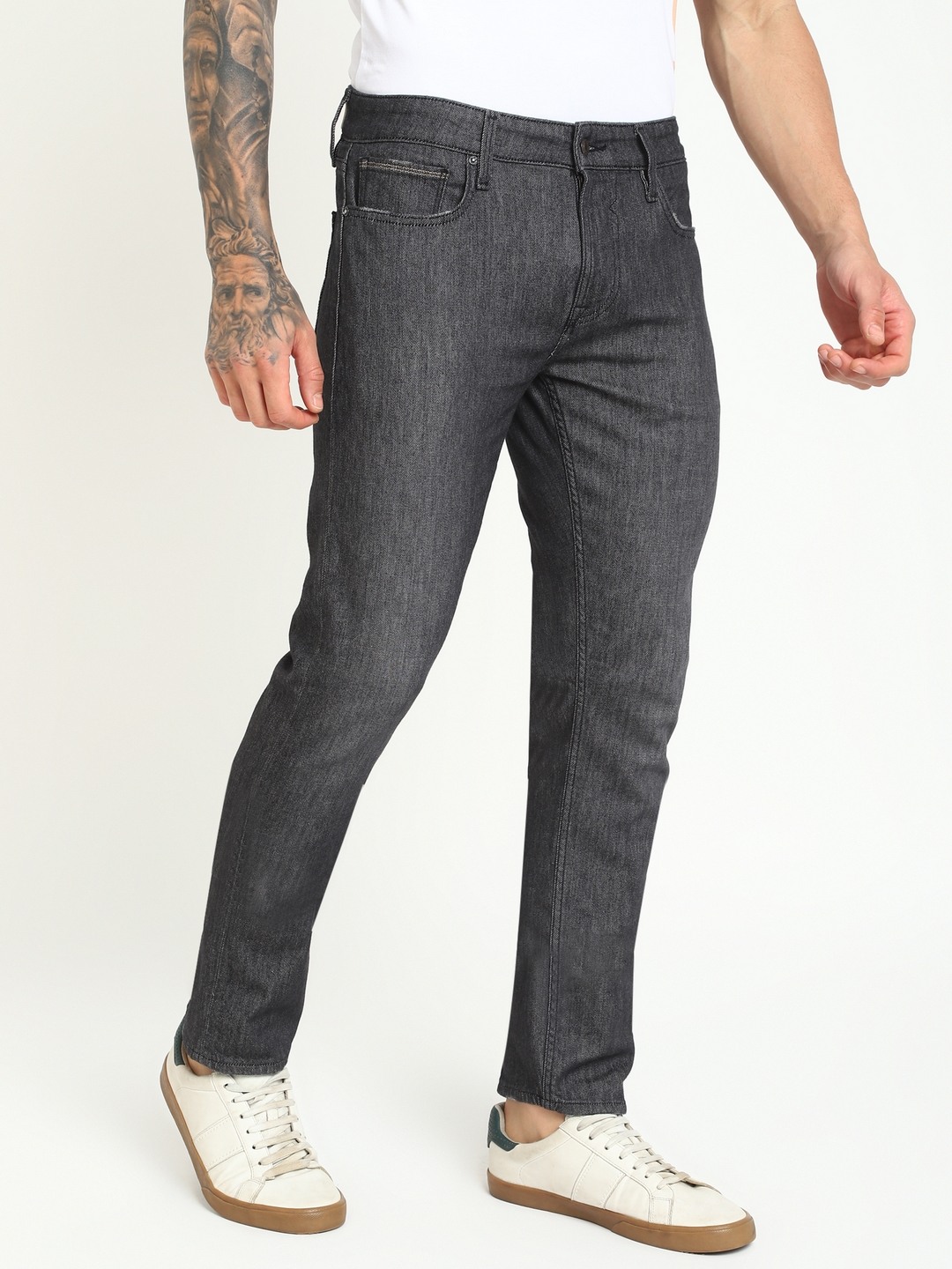Grey Solid Mid-Rise Regular Length Jeans