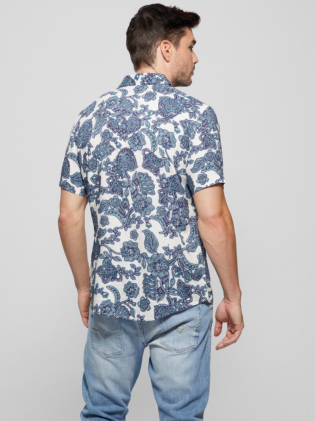 • Guess Men Blue Printed Spread Collar Short Sleeves Shirt