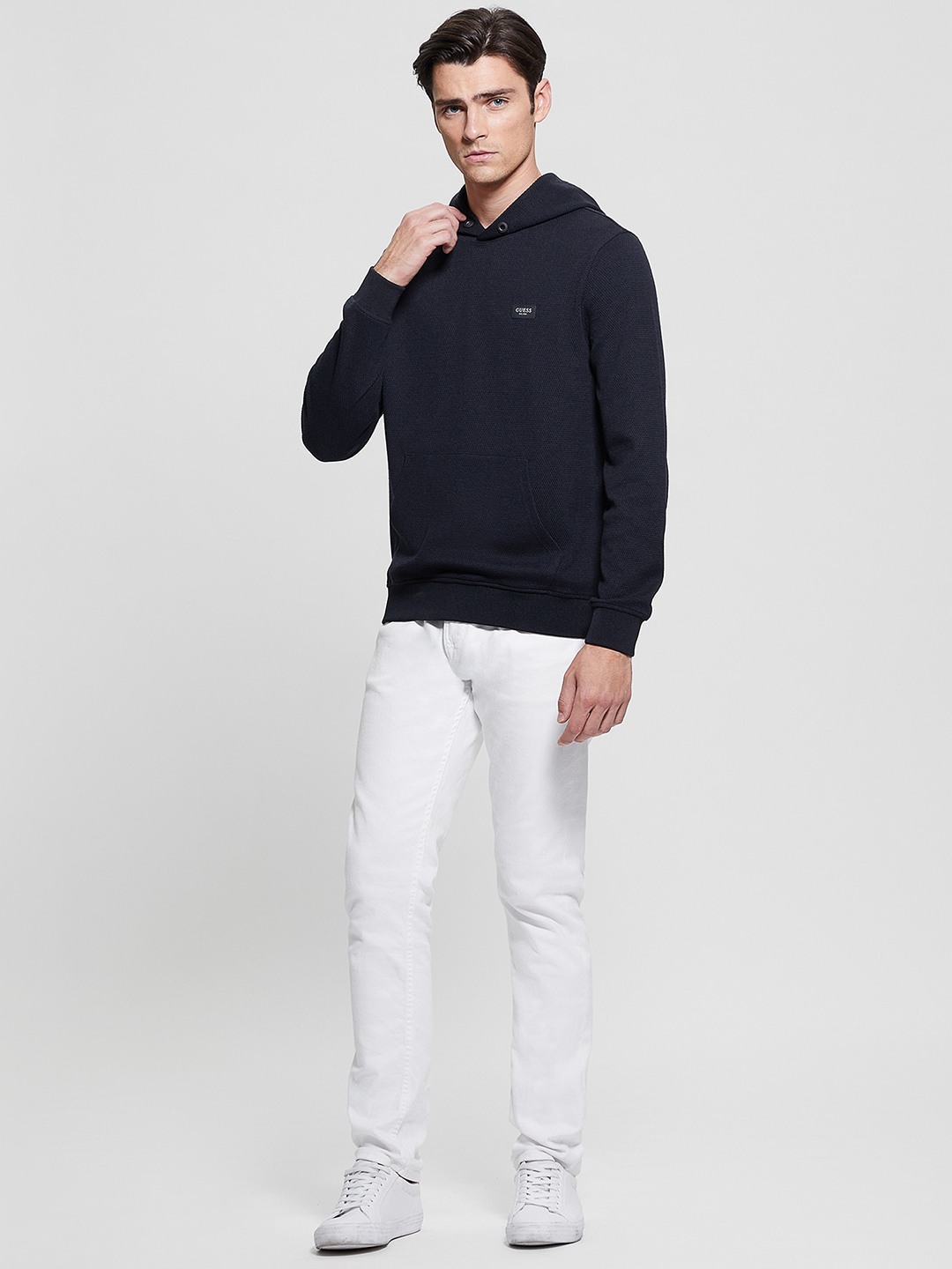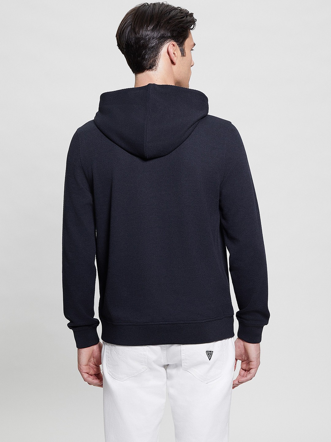 Navy Blue Solid Hooded Full Sleeves Pullover Style Sweatshirt