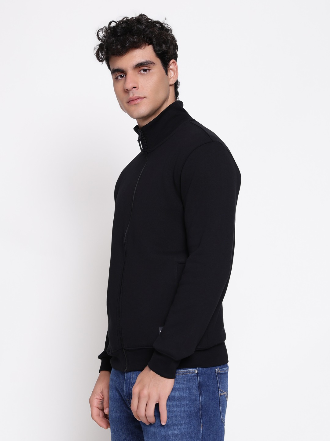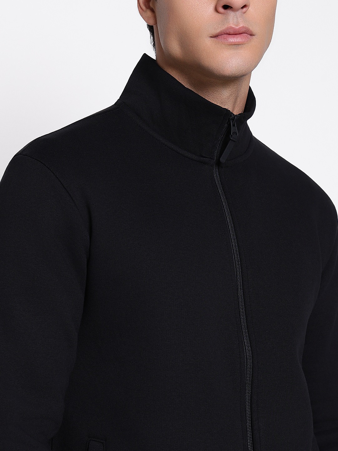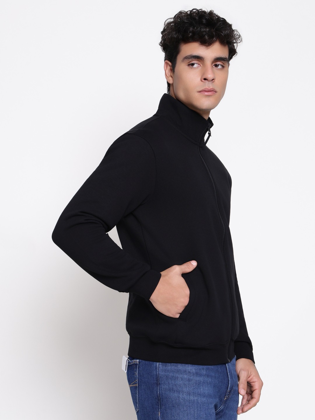 The nicco organic zip front sweatshirt for men offers a comfortable regular fit in a sleek black solid pattern. Crafted from soft cotton fabric, it provides all-day comfort and breathability. The full sleeve design and high neck add to its stylish appeal, making it perfect for casual outings or relaxed days. The zipper closure ensures easy wear and a customizable fit. This sweatshirt combines functionality with modern style, making it a versatile addition to any wardrobe.