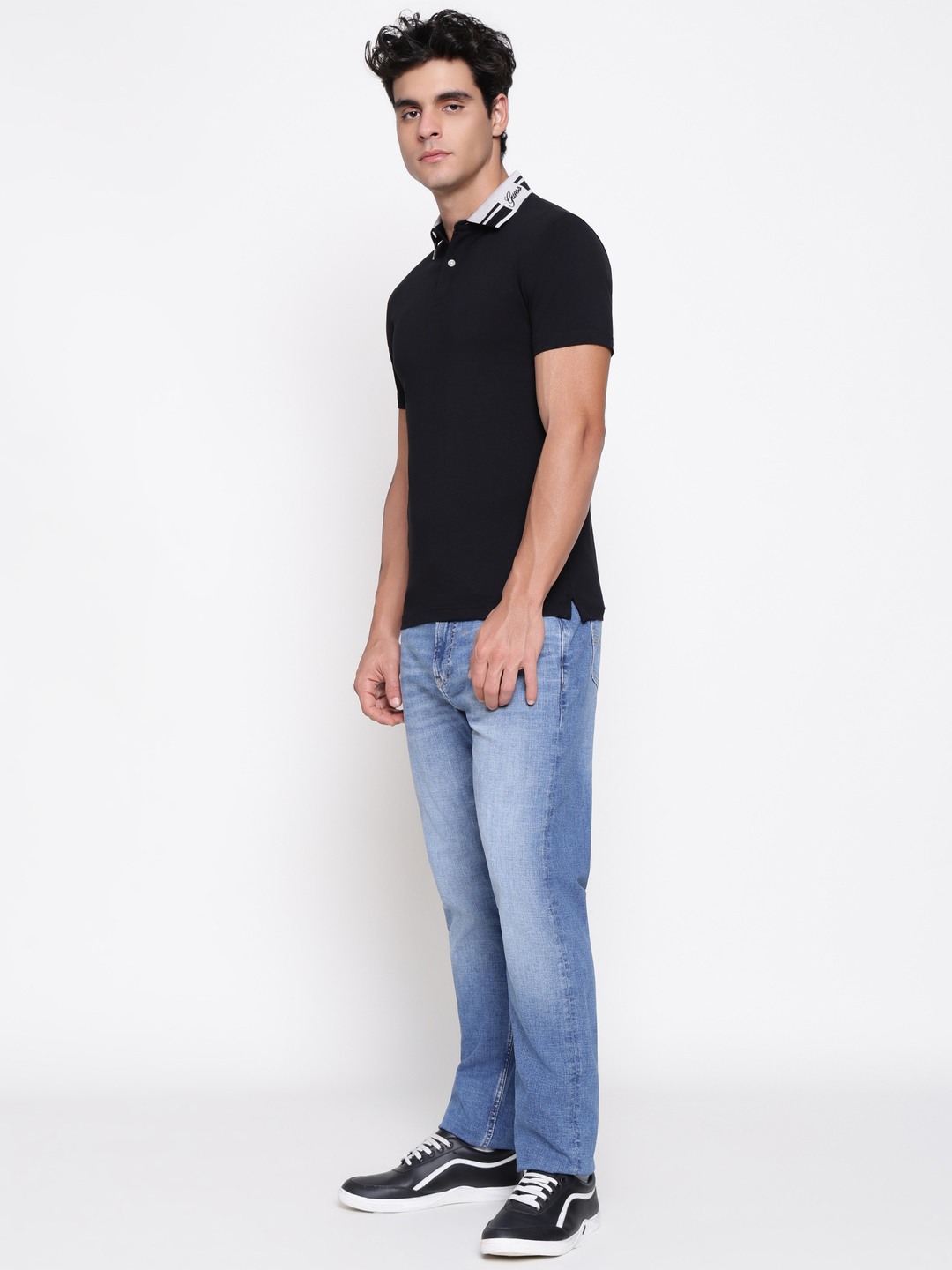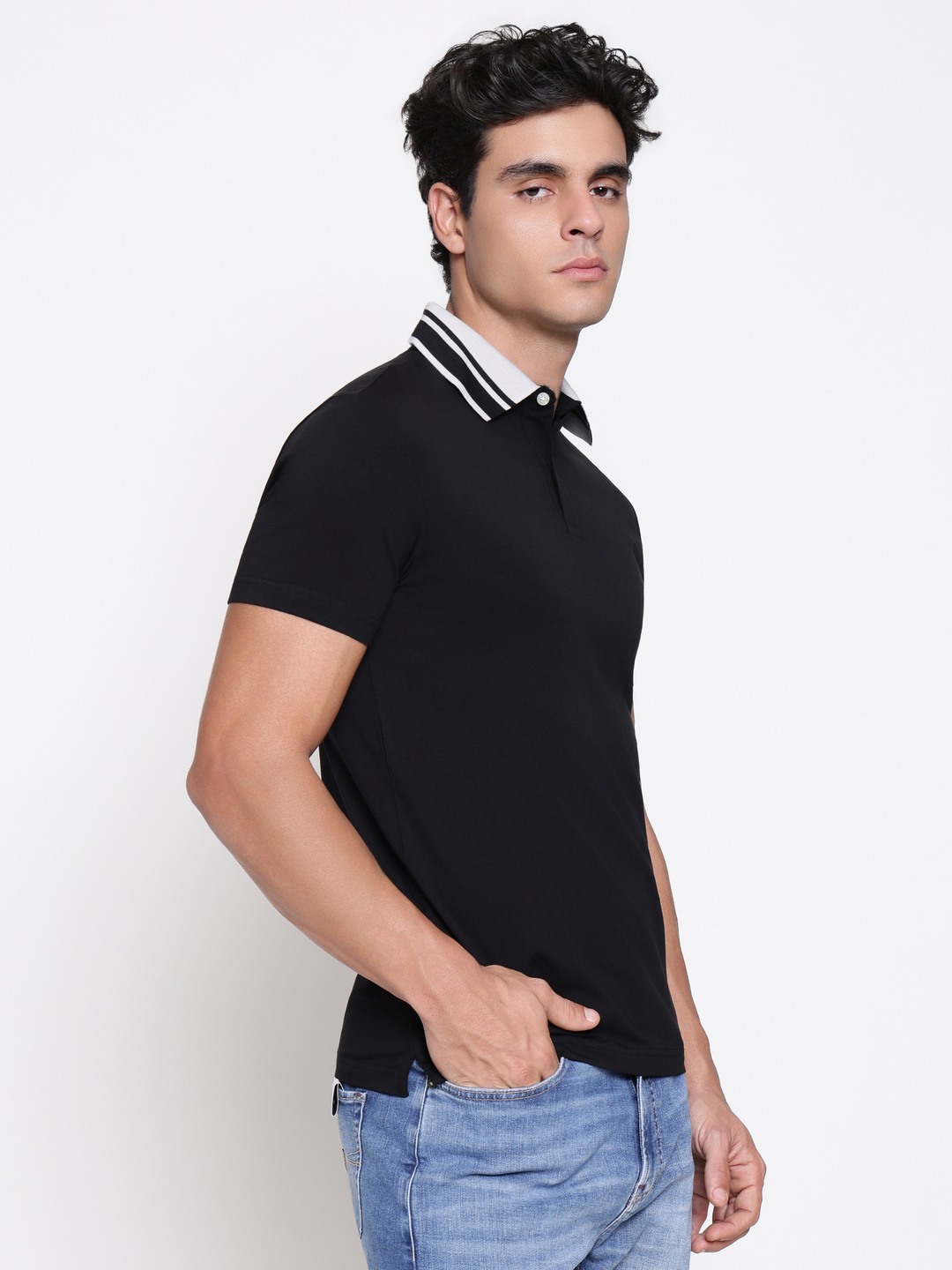 The nolan t-shirt for men offers a classic black color with a regular fit that ensures comfort and style. Made from soft cotton fabric, it features a solid pattern perfect for versatile wear. The short sleeves and polo neck design provide a timeless look suitable for casual or semi-formal occasions. A convenient button closure adds a touch of sophistication. This t-shirt combines comfort and style effortlessly, making it a must-have addition to your wardrobe for everyday wear or special outings.
