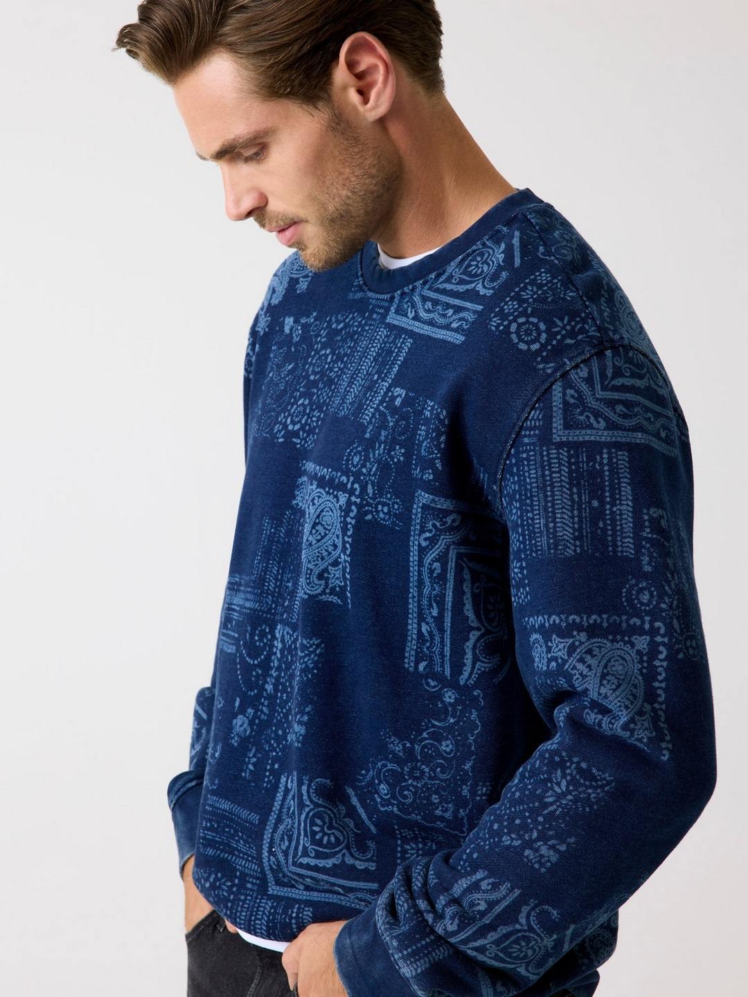 Elevate your casual wardrobe with our Navy Blue Paisley Sweatshirt, designed for the modern man who values both style and comfort. This regular-fit sweatshirt features an intricate paisley pattern that adds a touch of sophistication to your everyday look. Crafted from premium cotton fabric, it ensures breathability and softness, making it perfect for all-day wear. The long sleeves and round neck provide a classic silhouette, while the pull-on closure offers ease and convenience. Ideal for layering or wearing solo, this sweatshirt is a versatile addition to any outfit.