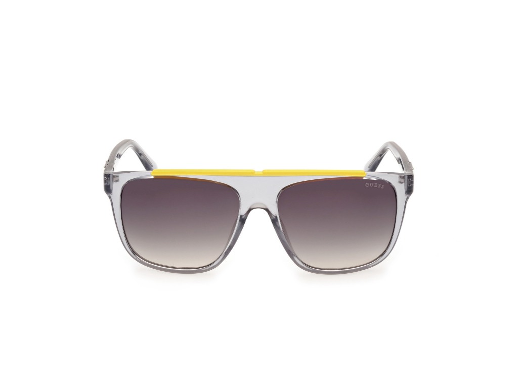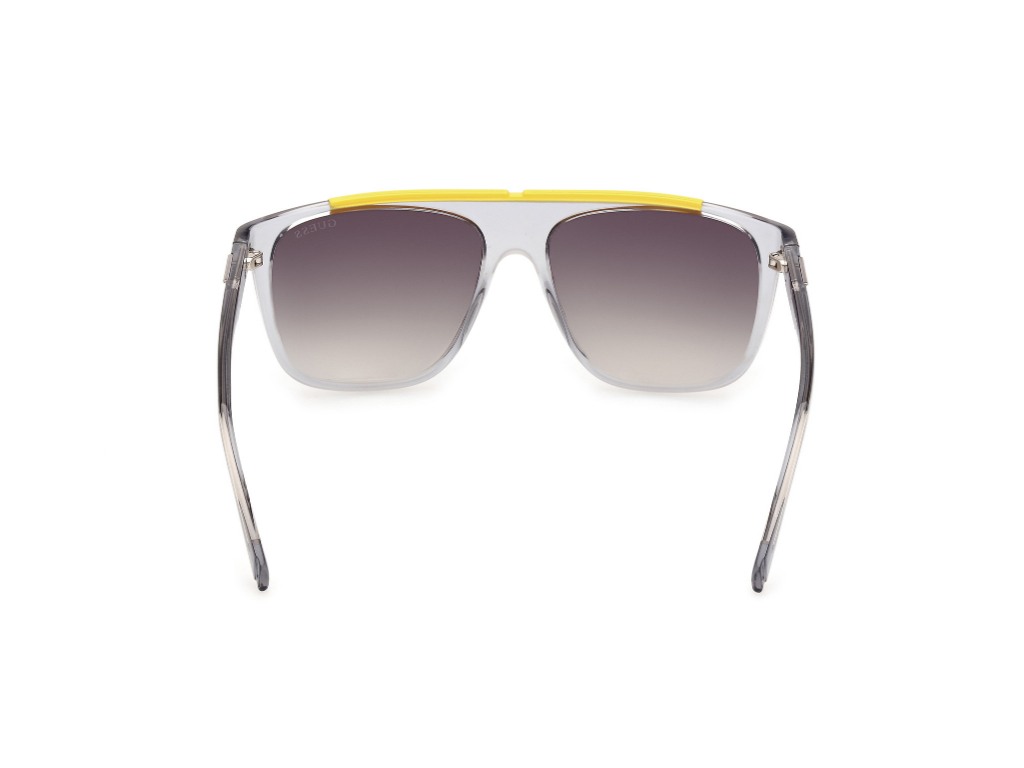 Discover the perfect blend of style and functionality with Guess square sunglasses. Featuring a sleek full rim frame in shiny crystal grey and matt yellow, these sunglasses are crafted from durable polycarbonate. The smoke gradient lenses offer a modern touch, making them an ideal choice for the fashion-forward man. Embrace a trendy grey tone that complements any look.