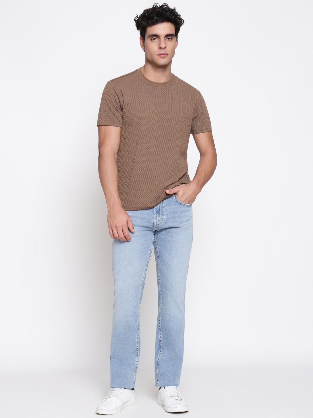 Experience timeless style with rodeo denim jeans in a light blue shade. Designed for comfort and versatility, these regular fit jeans feature a solid pattern with a mid-rise waist for a flattering fit. Crafted from high-quality cotton fabric, they offer durability and breathability for everyday wear. The jeans are equipped with a secure button and zip closure, making them easy to wear and remove. Perfect for casual outings or relaxed occasions, these rodeo denim jeans combine classic design with modern comfort for men.