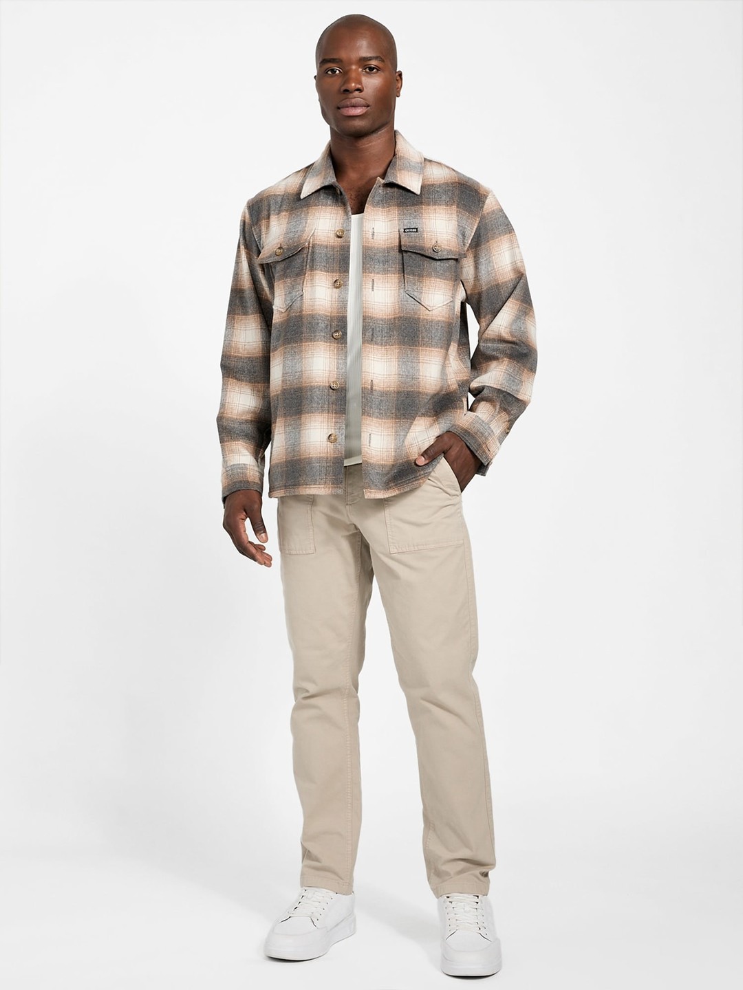 Elevate your wardrobe with our beige comfort-fit checked shirt, designed for the modern man who values style and ease. Crafted from premium polyester fabric, this shirt offers a soft touch and durability, ensuring you stay comfortable all day long. The classic checked pattern adds a timeless appeal, while the full sleeves and spread collar provide a polished look suitable for any occasion. Featuring a convenient button closure, this versatile shirt is perfect for both casual outings and formal events, making it a must-have addition to your collection.
