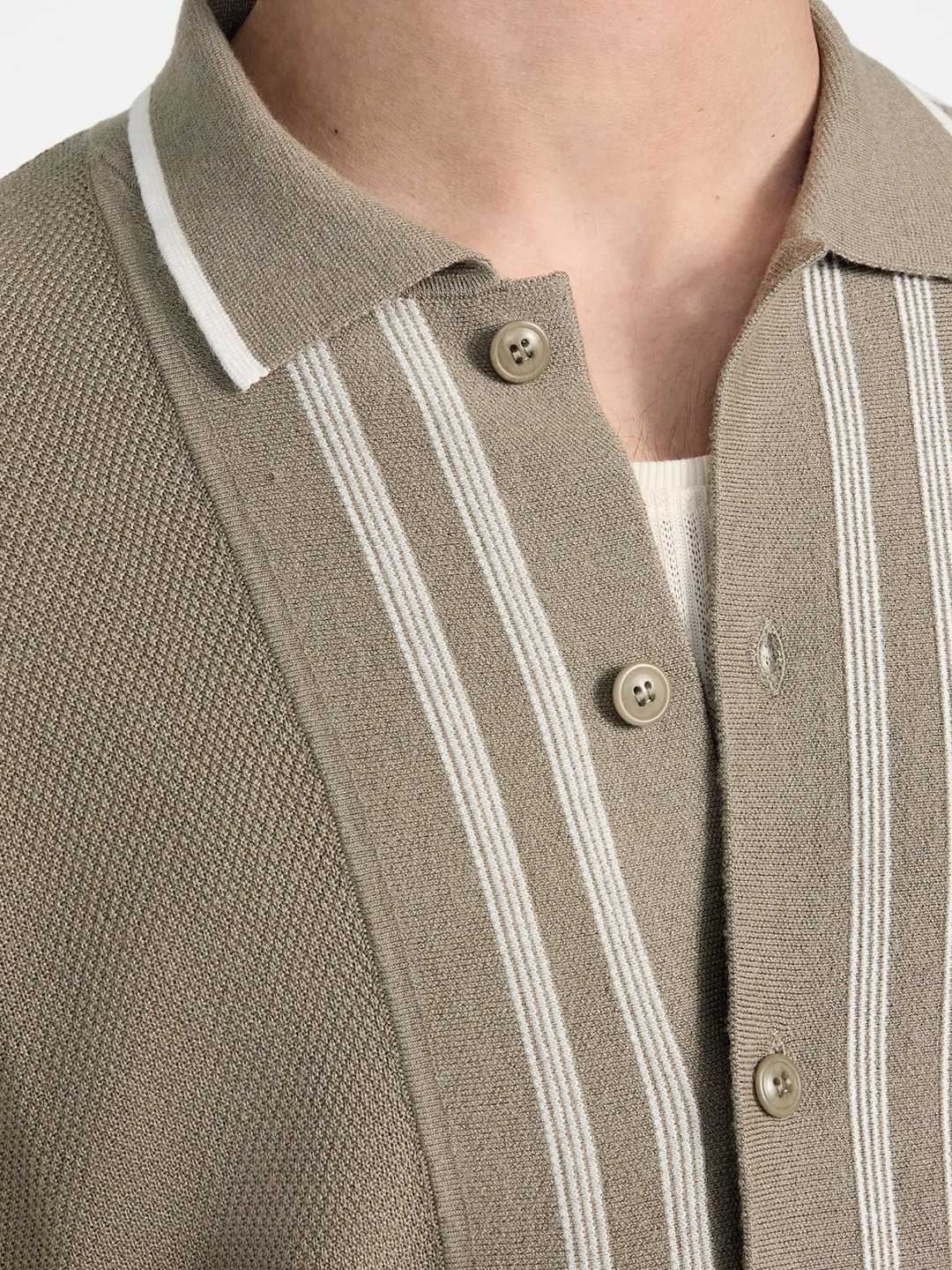 Elevate your wardrobe with this beige shirt, featuring a sophisticated vertical pattern. Designed for a regular fit, it boasts short sleeves and a spread collar for a classic look. Crafted from a luxurious viscose blend fabric, it ensures comfort and style. The button closure adds a refined finishing touch. Perfect for any occasion.