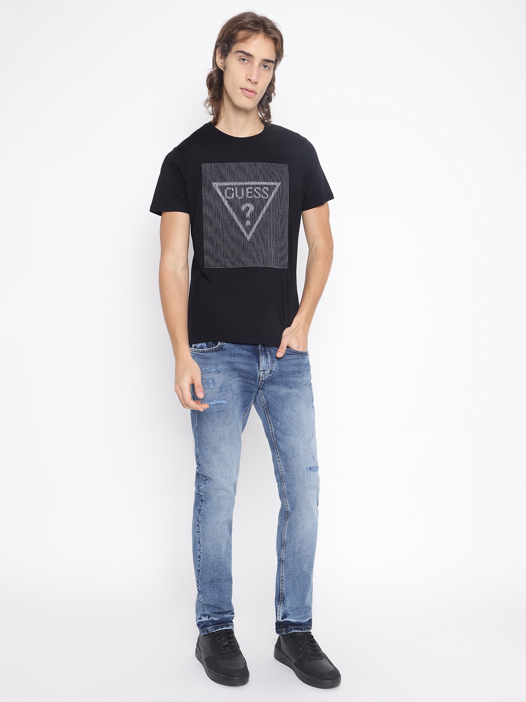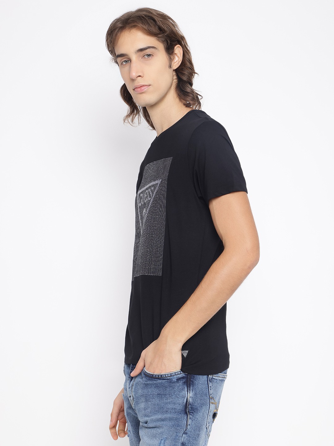 Elevate your style with our black slim-fit T-shirt, featuring a sleek brand logo pattern. Crafted from premium cotton, it offers ultimate comfort and breathability. The short sleeves and classic crew neck design ensure a timeless look, while the slip-on closure provides effortless wear. Perfect for the modern man seeking sophistication.
