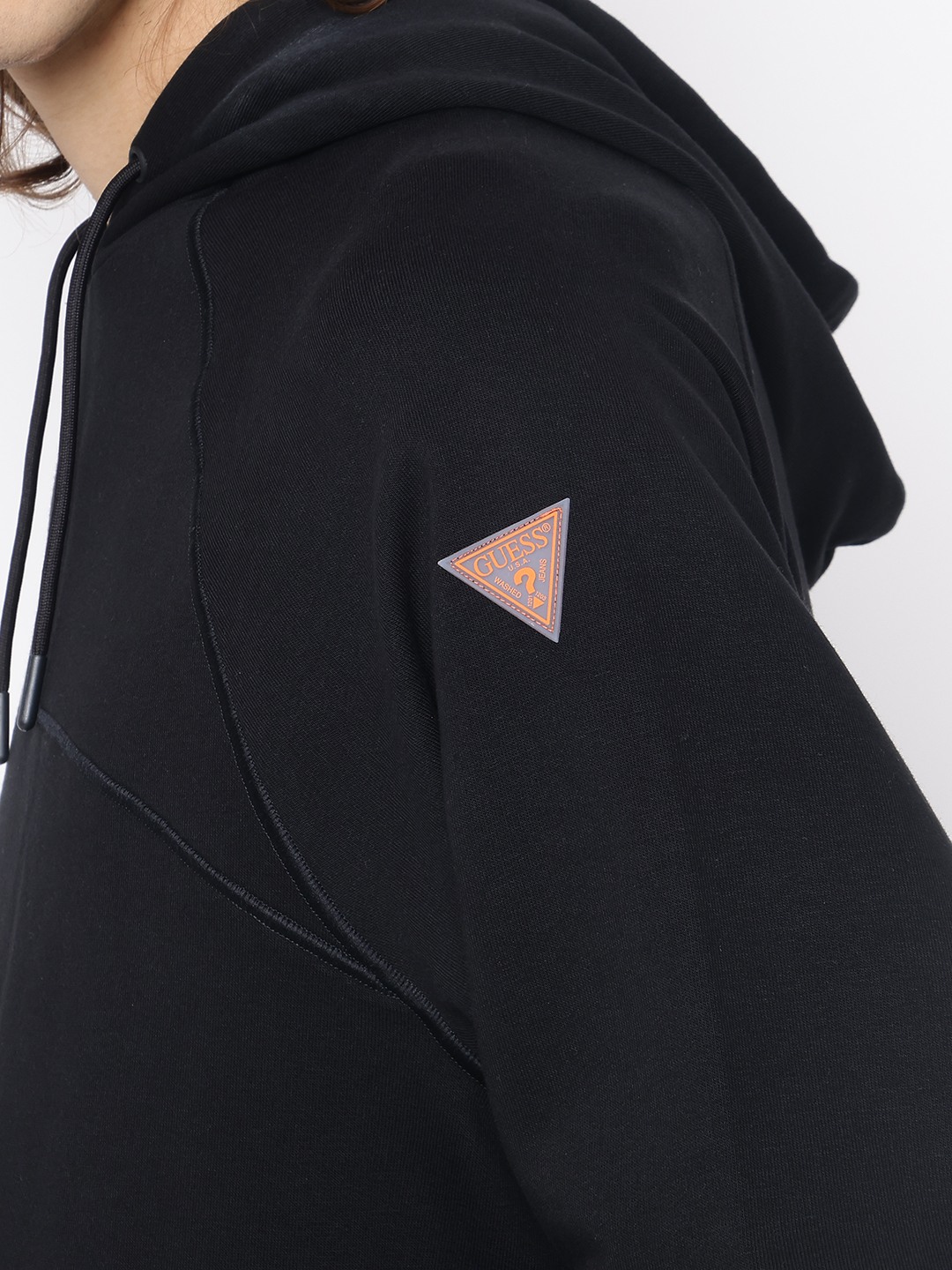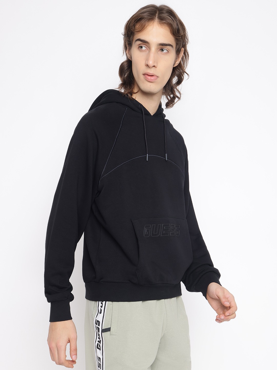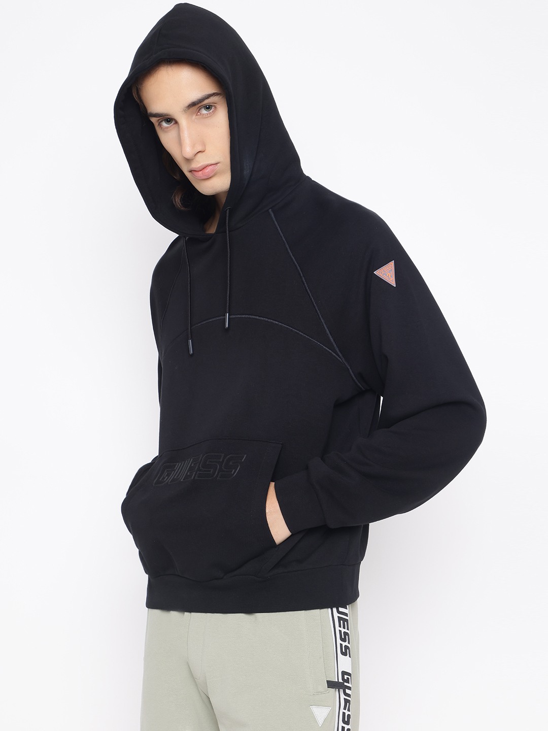 Elevate your style with our black typography-patterned sweatshirt. Featuring a regular fit, long sleeves, and a hooded neck, this piece combines comfort and fashion. Crafted from a premium cotton blend, it offers a soft touch and durability. The slip-on closure ensures easy wear, making it a must-have for any wardrobe.