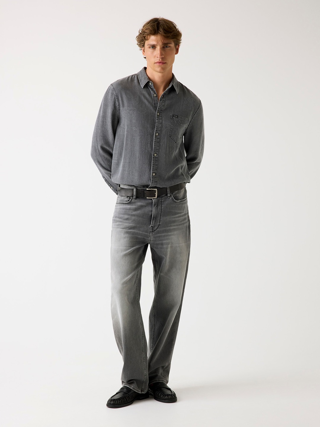 Elevate your style with our grey jeans featuring a regular fit and washed pattern. Designed for men, these mid-rise jeans offer a comfortable button closure. Crafted from premium cotton fabric, they ensure breathability and durability. Perfect for any occasion, these jeans effortlessly blend classic style with modern comfort.