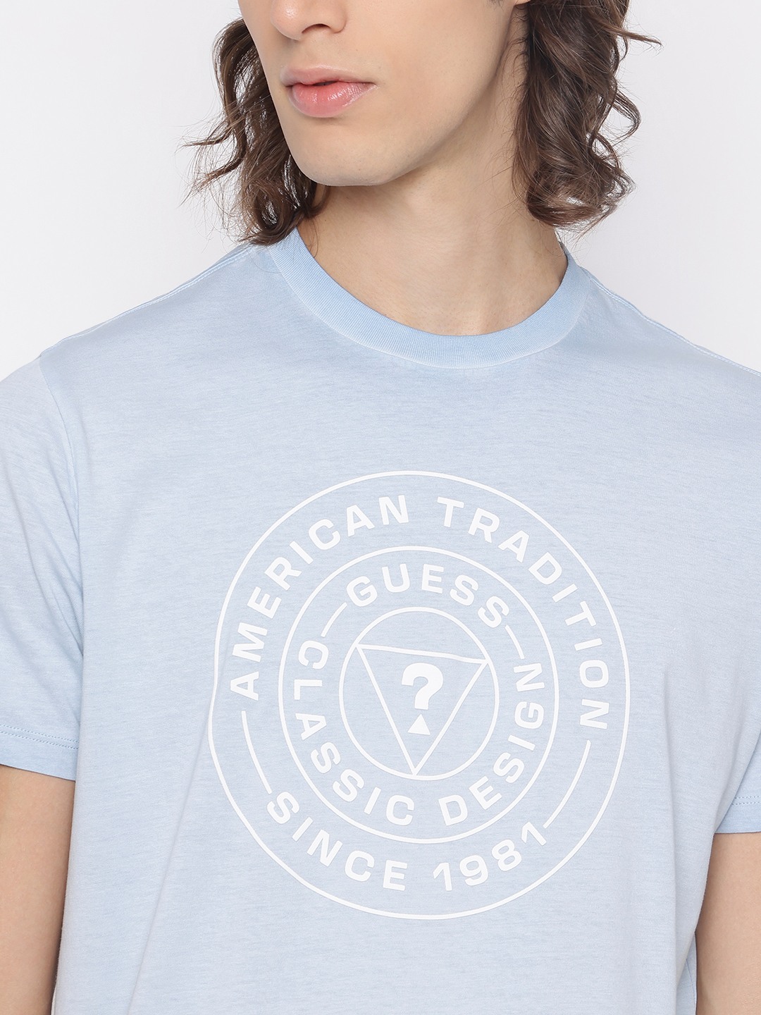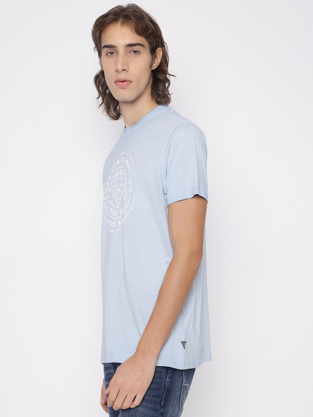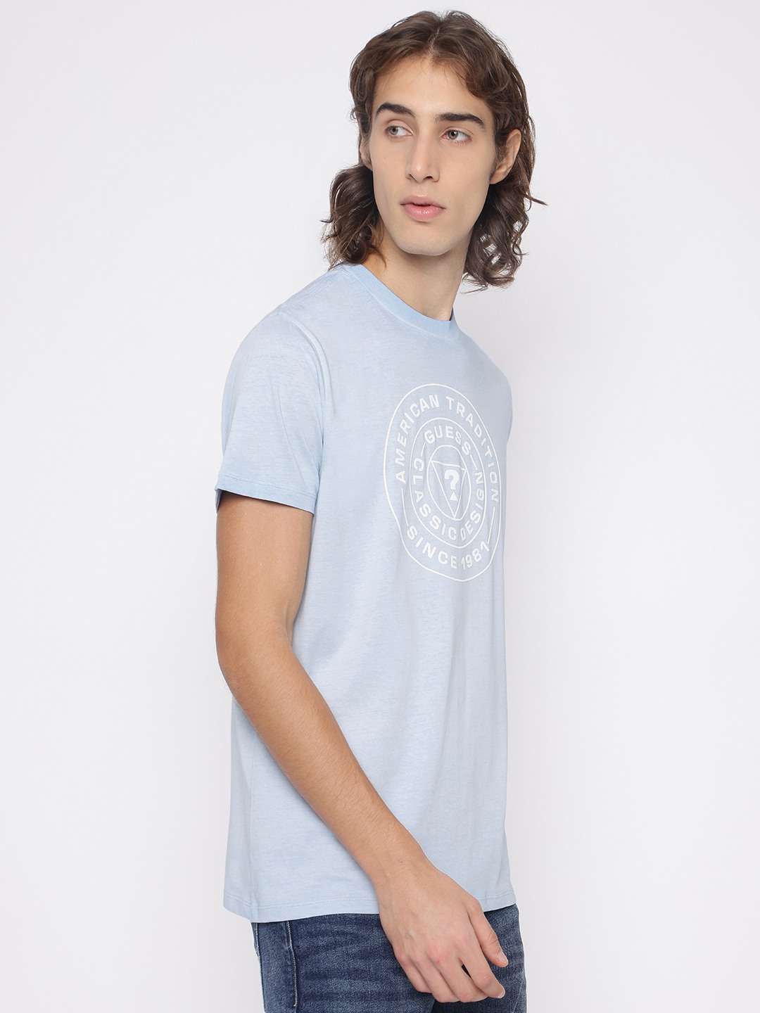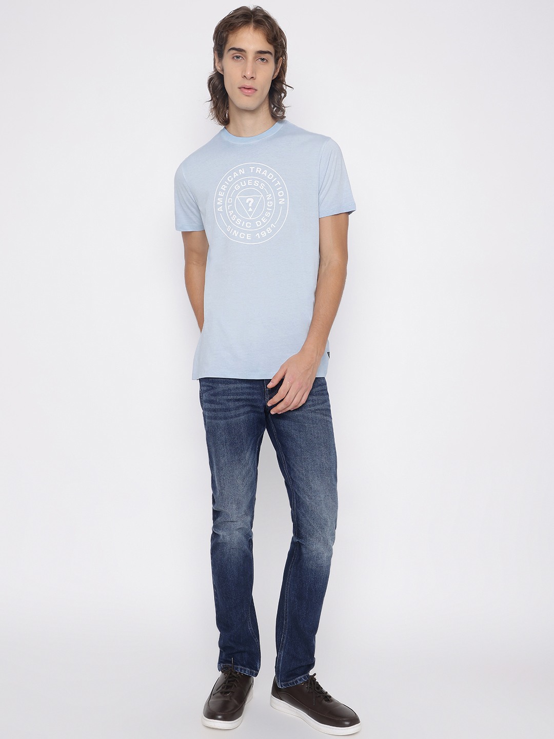 Elevate your casual wardrobe with our blue typography-patterned T-shirt. Crafted from soft cotton, it offers a regular fit for ultimate comfort. Featuring short sleeves and a classic crew neck, this slip-on design is perfect for everyday wear. Ideal for men seeking style and ease, it's a versatile addition to any outfit.