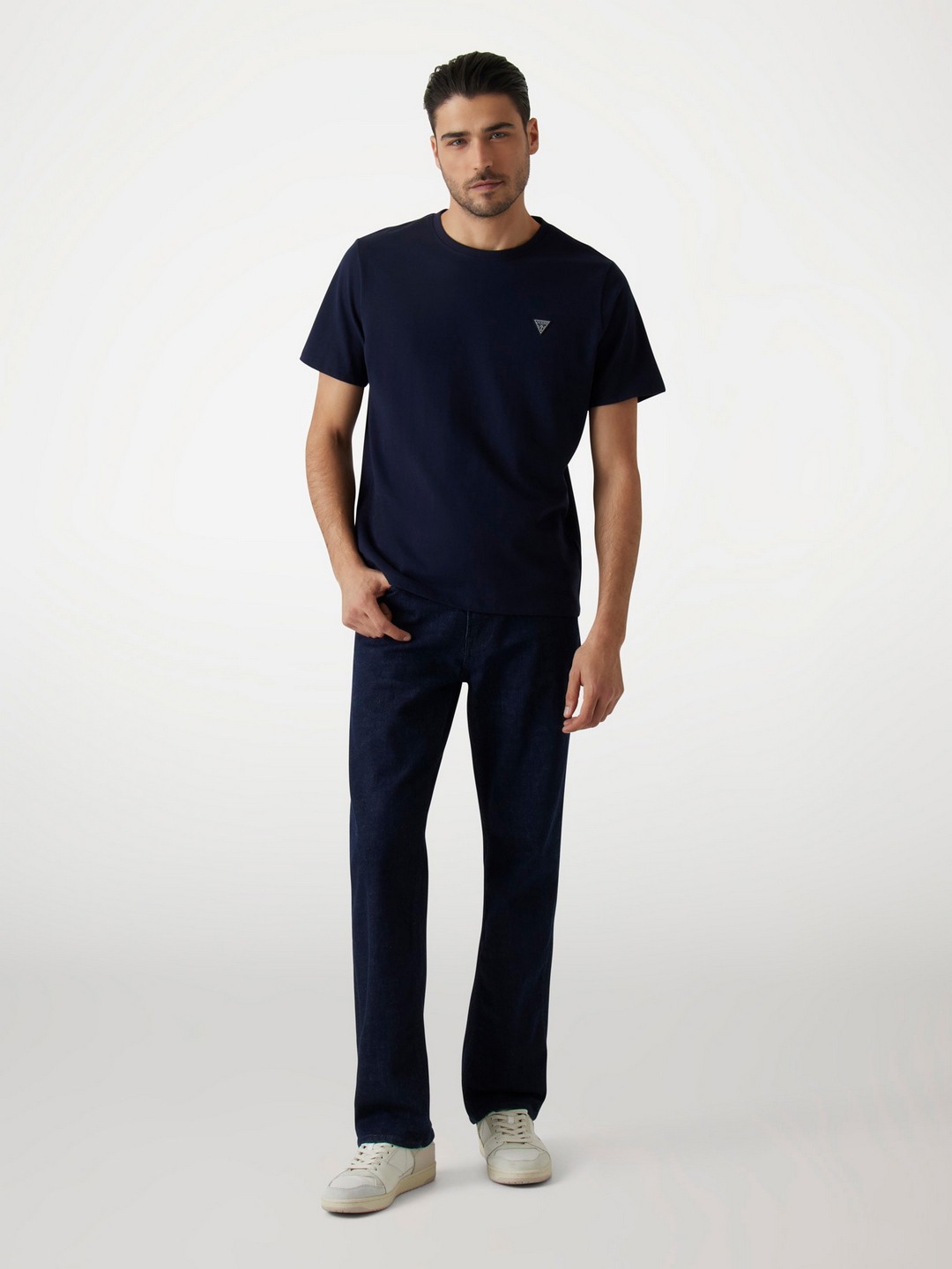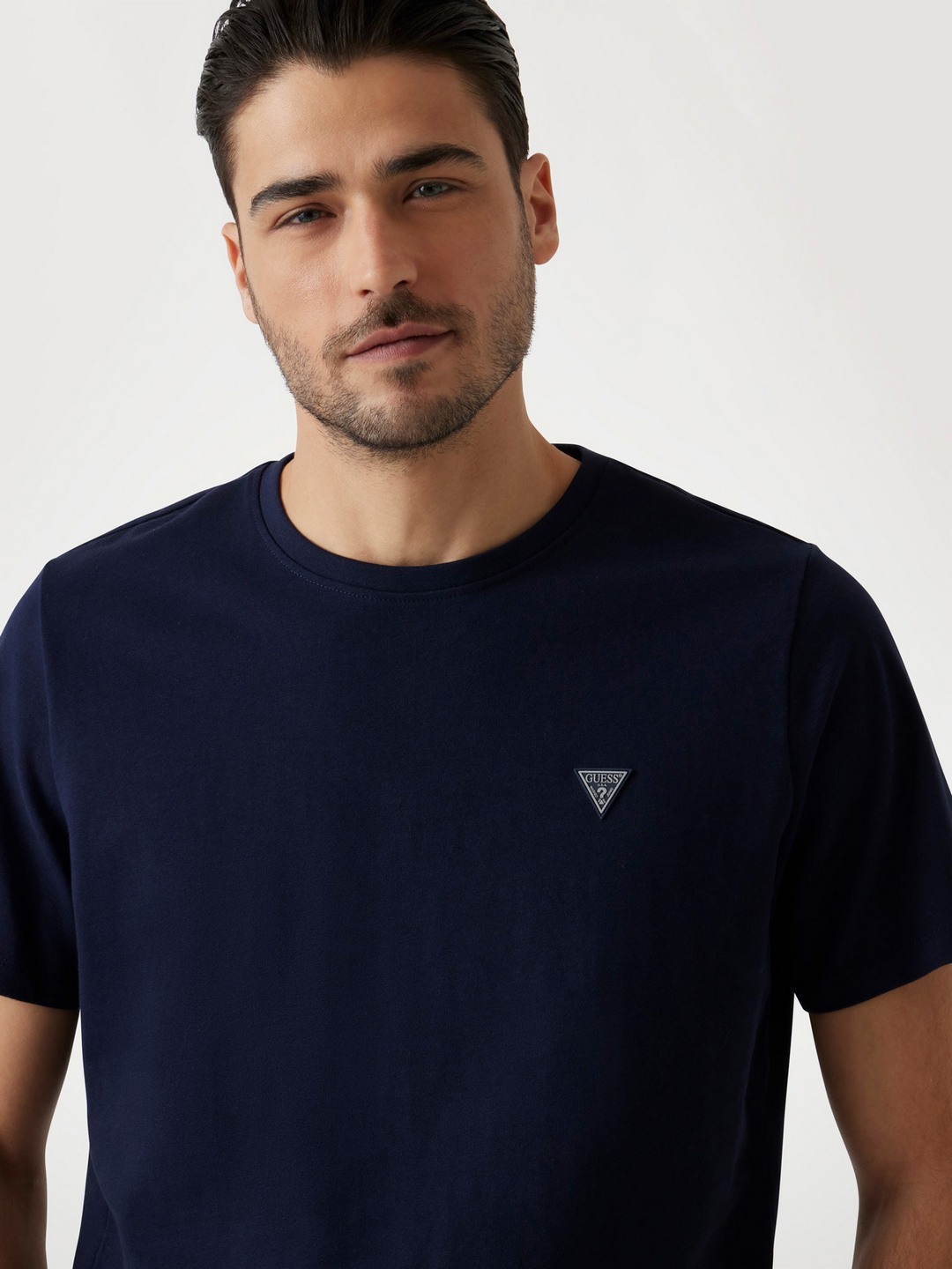 Guess Men's Blue Solid Round Neck Short Sleeves T-Shirt