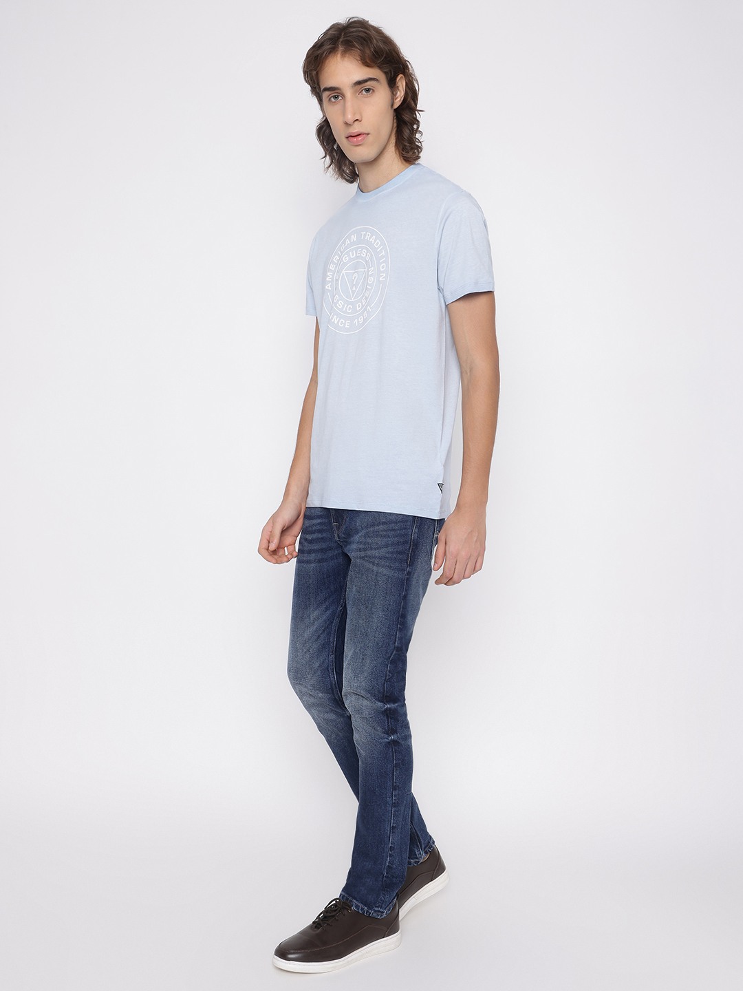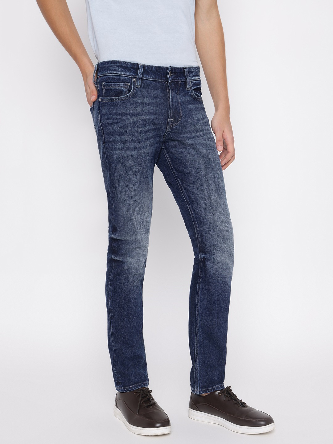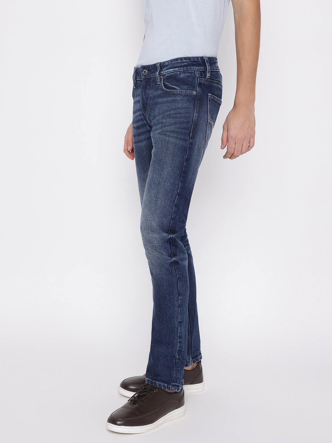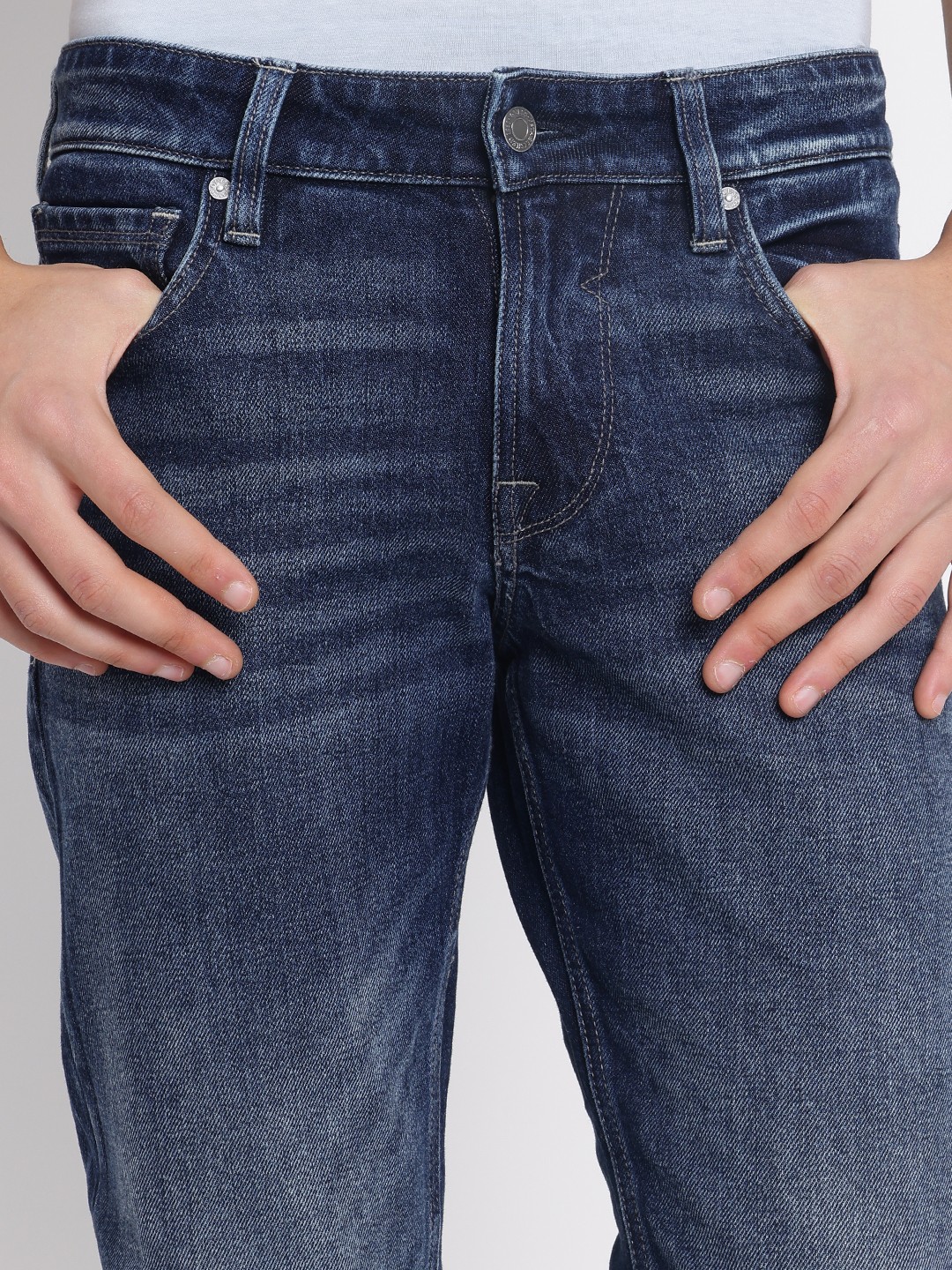 Discover the perfect blend of comfort and style with our blue regular fit jeans for men. Featuring a washed pattern and mid-rise design, these jeans offer a classic look. Crafted from a soft cotton blend, they ensure all-day comfort. The button and zip fly closure adds a practical touch.
