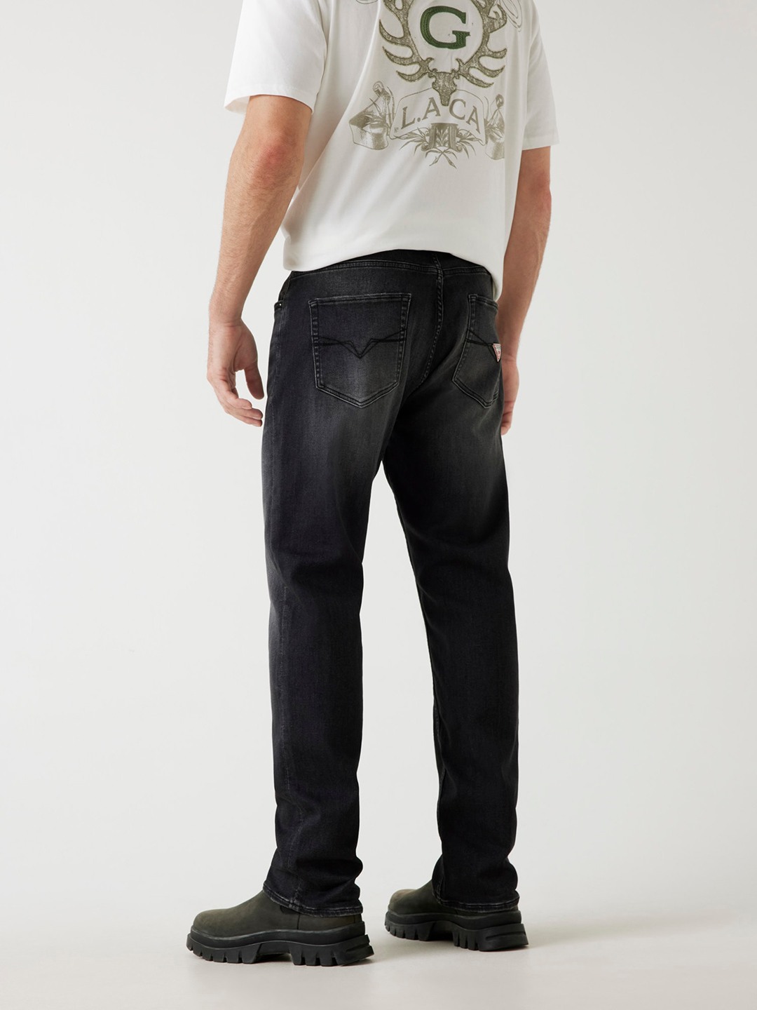 Elevate your style with our black regular fit jeans featuring a washed pattern. Designed for men with a mid-rise and button closure, these jeans offer a perfect blend of comfort and style. Crafted from premium cotton fabric, they ensure durability and breathability for everyday wear. Perfect for any occasion.